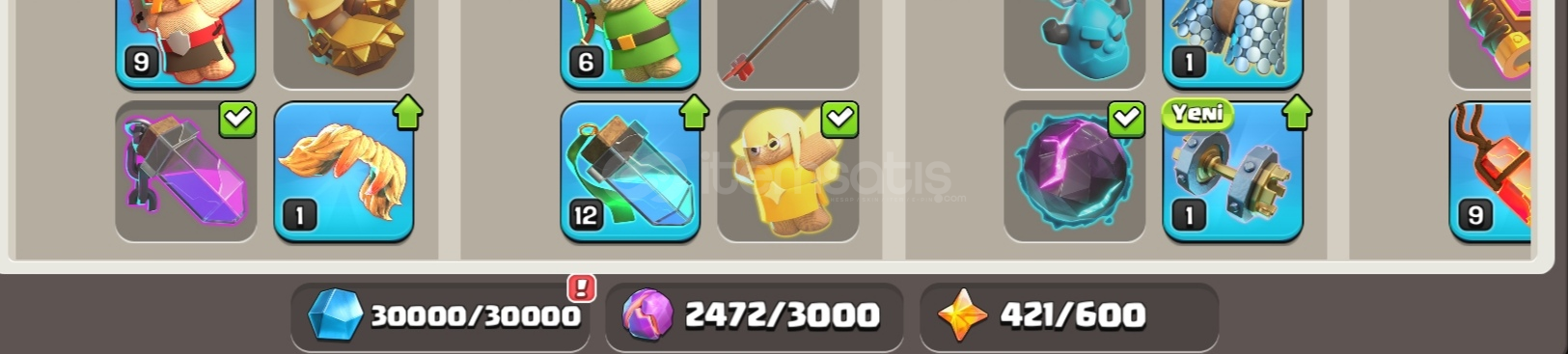 Bb 12 max 1.3 K yeşil taş5 inşaatçılıBüyülü kitaplar 4xKahraman güçlerini geliştirmek için parçalar full665 tane madalyonHesap dopdolu her şey var gayet uygun fiyattan sizlerle alıcısına şimdiden hayırlı olsun...