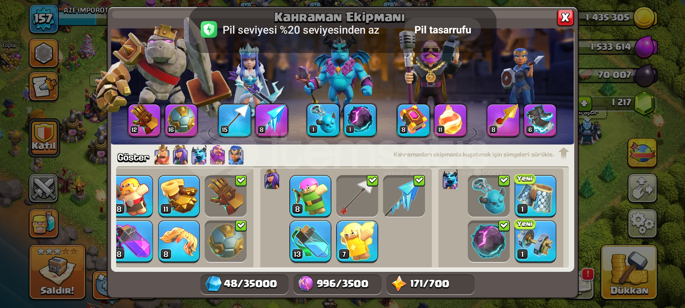 DUVARLAR 13 200 LİG PARASI İNŞAATÇI BİNASI 9 LEVELTAŞ MADENİ 7 LEVEL