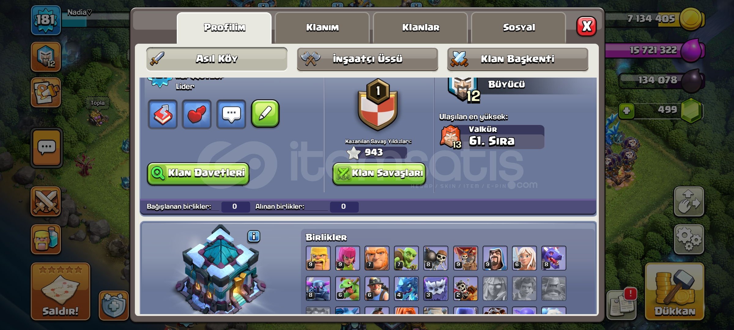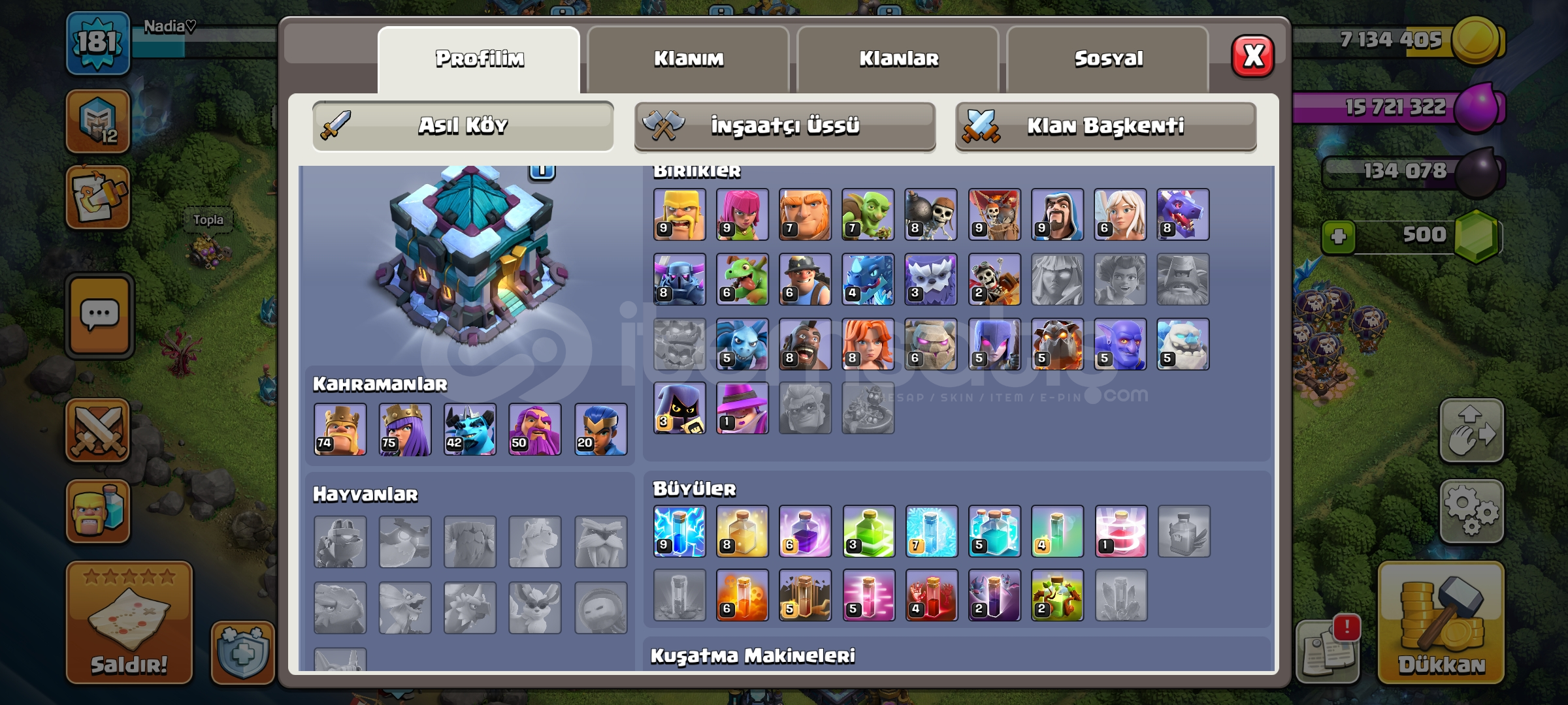 Bb 136 inşaatcılı500 taşlıKahramanlar 74-75-42-50-20181 seviye943 savaş yıldızlı158 lig madalyalıDetaylı bilgi için mesaj atmanız yeterlidir
