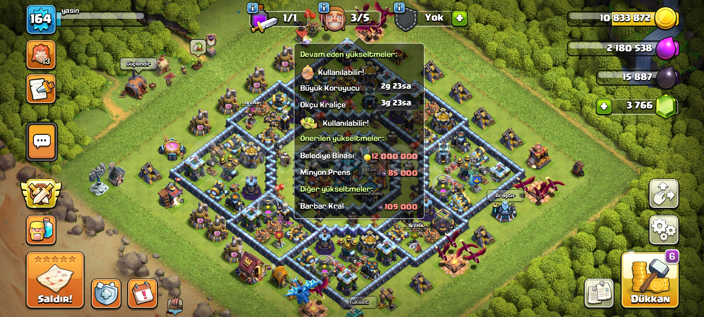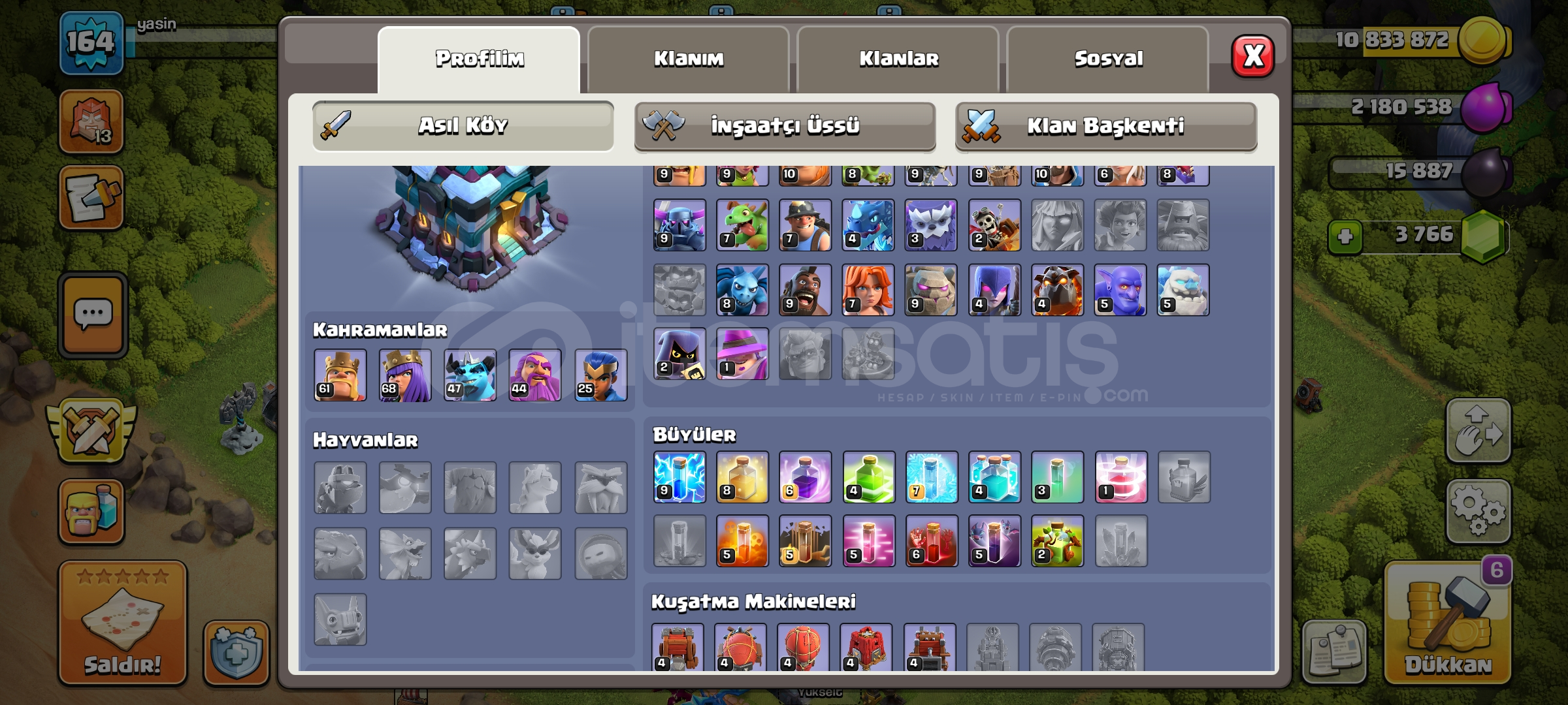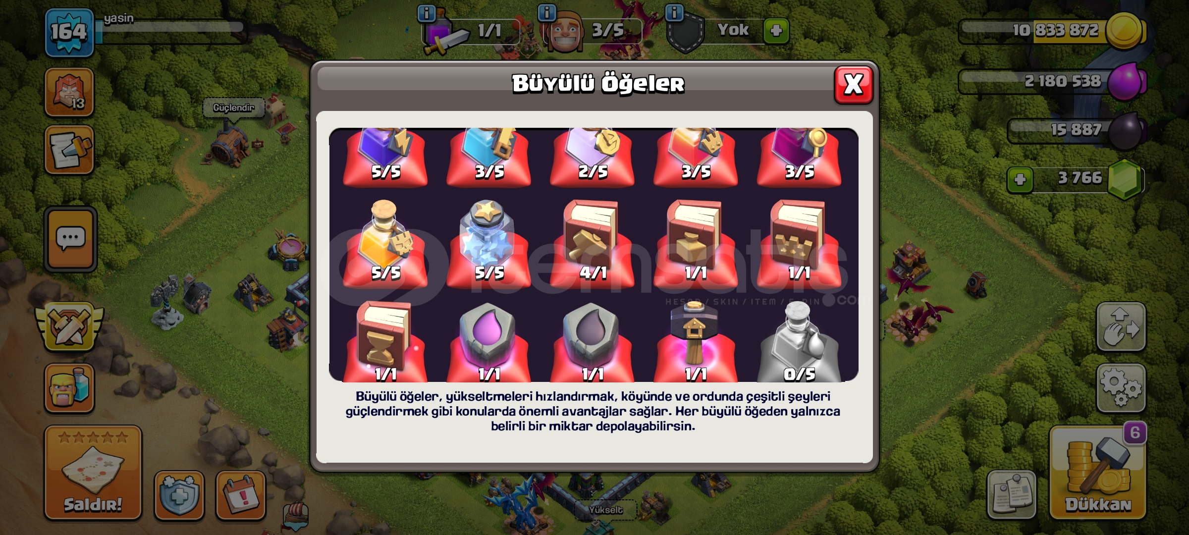 Hesap Full`dürHesapta 3.766 Elmas vardır.Her kahramanın kostümü vardır.Belediye hazinesi nde bolca kitap, iksir vb.vardır.Alana hayırlı olsun.
