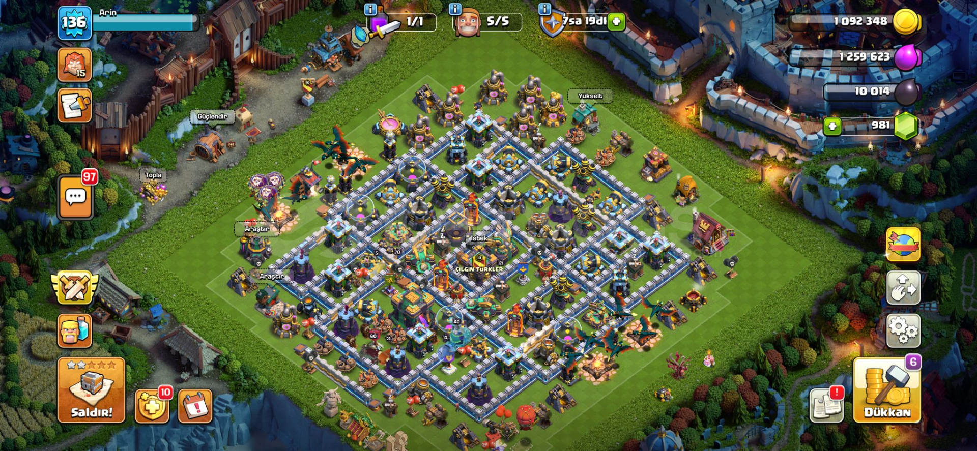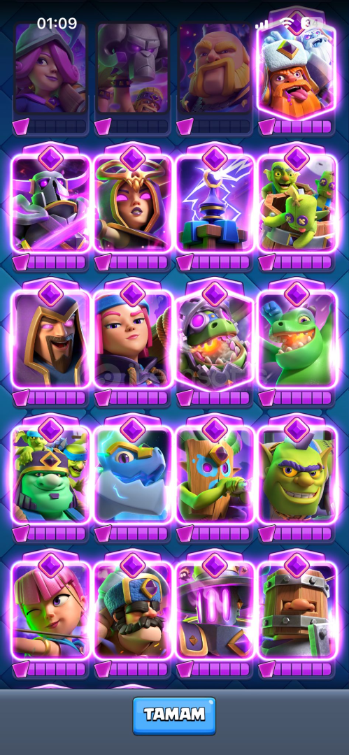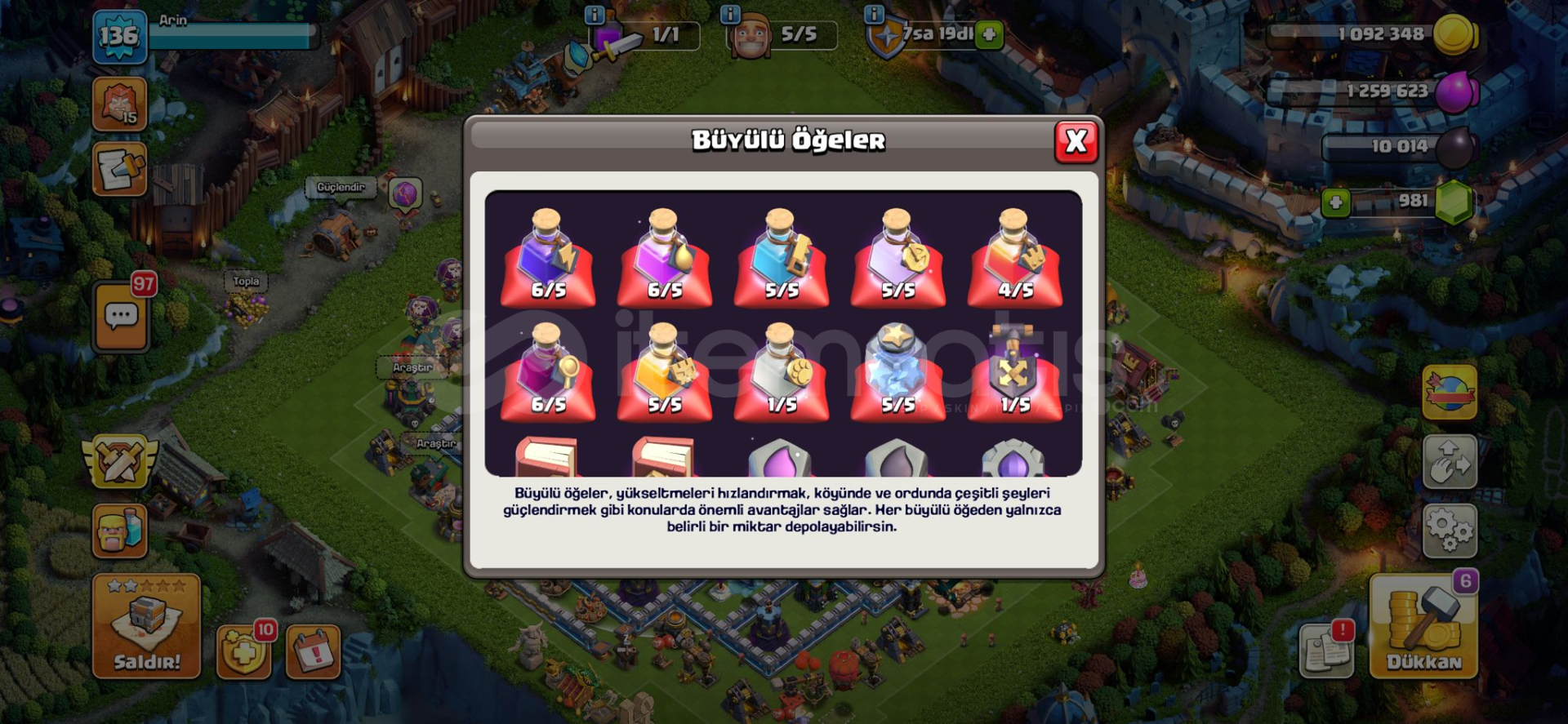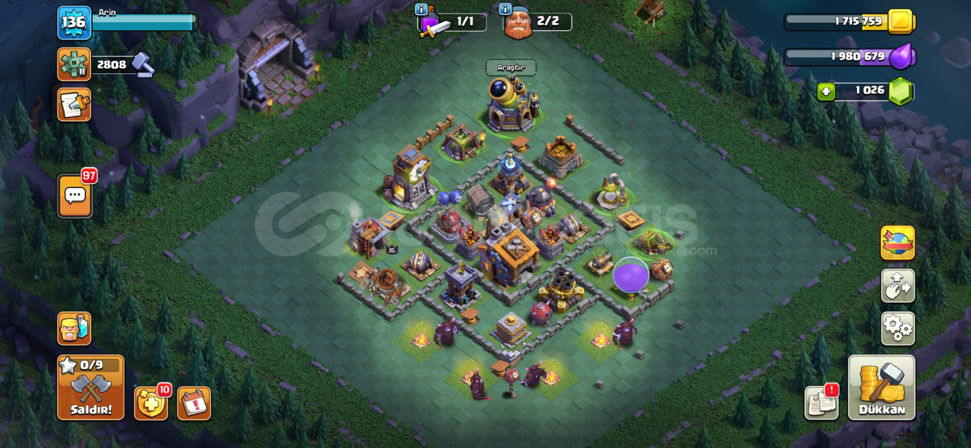 Clash of Clans hesabı:14 seviye belediye binası136 seviye7 hero kostümübüyülü ögelerin çoğu var+1000 taşad değiştirme varyarı max1 ücretli 1 pass arka planı5 max askerkral 60 kraliçe 70 prens 37 koruyucu 40 şampiyon 21 seviye5 inşaatçı var ama 6. inşaatçı yarılanmış halde Clash royale hesabı:9600 kupa19 evrim4 elit-7 tane 14 seviye kart10 efsanevi 14...