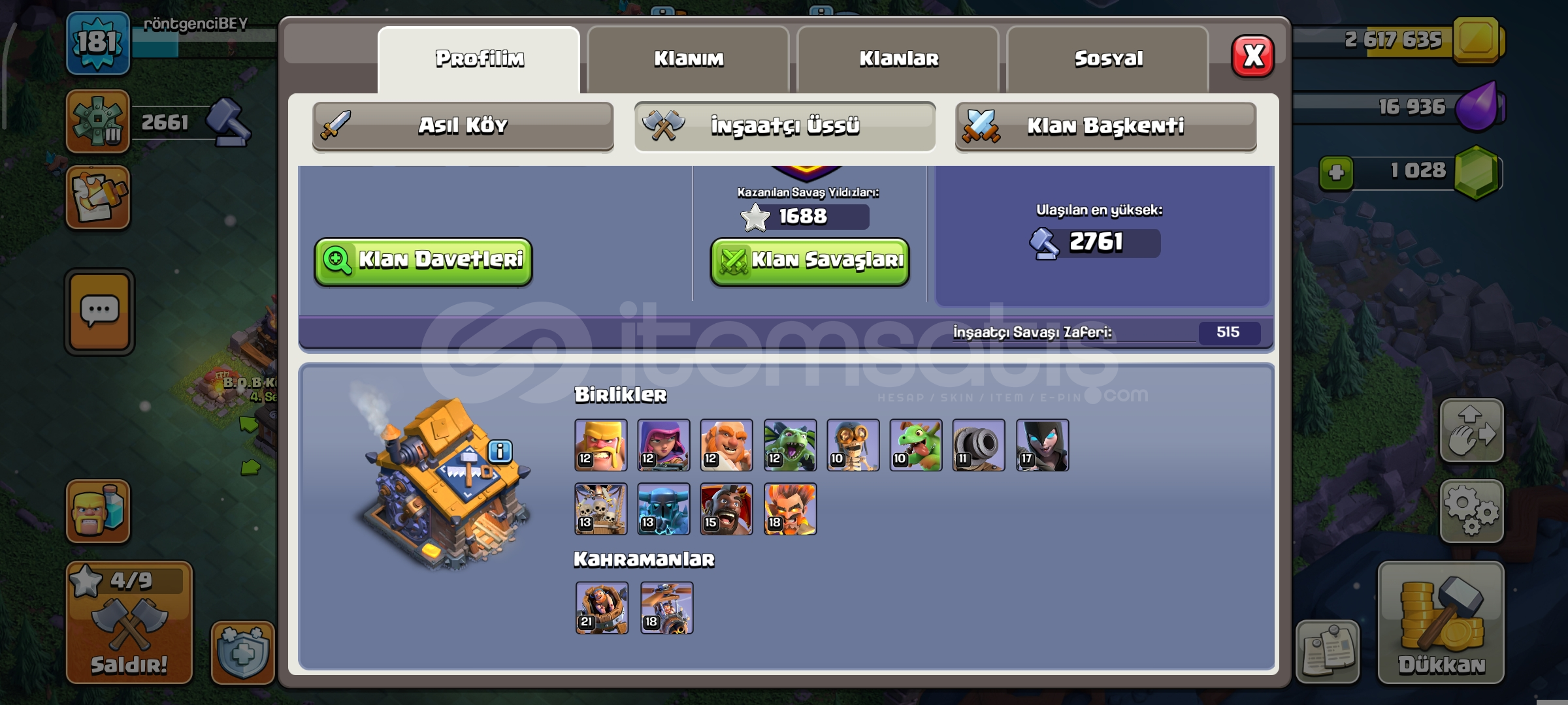 Bb 16 hesap 181 seviye Arka planlı 9 kostümlü 55 Lig madalyalı 1688 savaş yıldızlı Kahramanlar 59-65-51-31-24 Detaylı bilgi için mesaj atınız yeterlidir