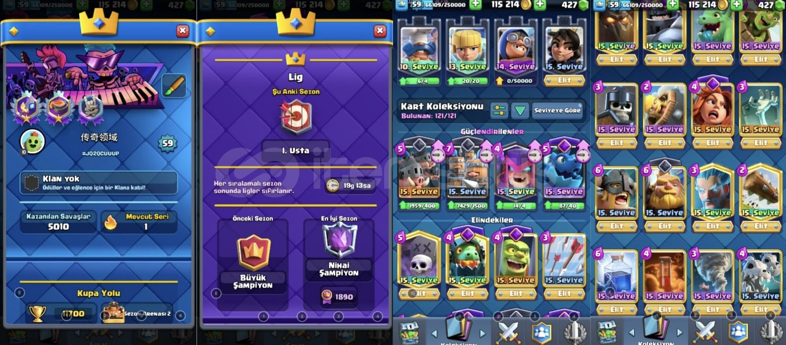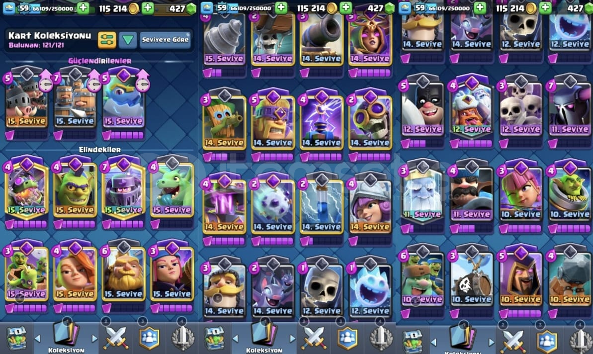 • Hesapta altın eksikliği oldugu için bazı kartların seviyesi düsüktür