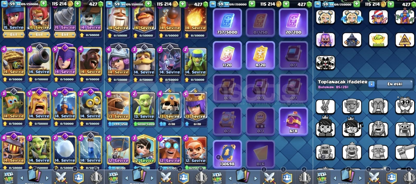 Clash of clans hesap bilgileri;Hesap mail ve sifre olarak size aktarılıcaktır. hesap korumasıda aktif değildir.Hesap pekka 22 ligindedir. 204 lvl hesaptır.Toplam 6 köstüm vardır.+500 elmas vardır.Barbar kral 85, Okçu kraliçe 94, minyon prens 63, büyük koruyucu 57, kraliyet şampiyonu 31 seviyesindelerdir.Clash royale hesap bilgileri;Hesap mail ve sifre olarak size aktarılıcaktır. hesap korumasıda ak...