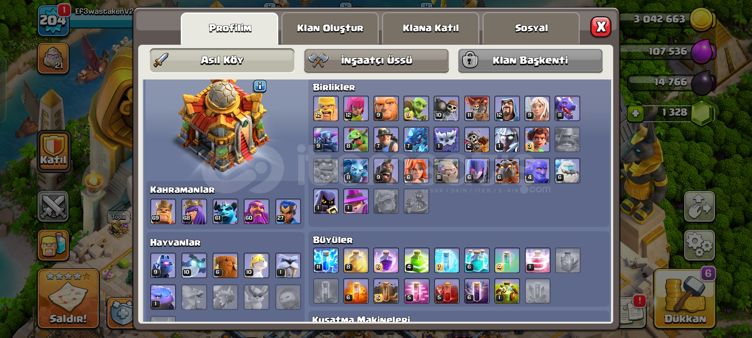 PAZARLIK YAPILIR MESAJ ATINUzun süredir girmediğim kendi yan hesabımdır. Satmaya karar verdim. Hesapta düzgün oynayan biri birkaç ayda maxlayabilir