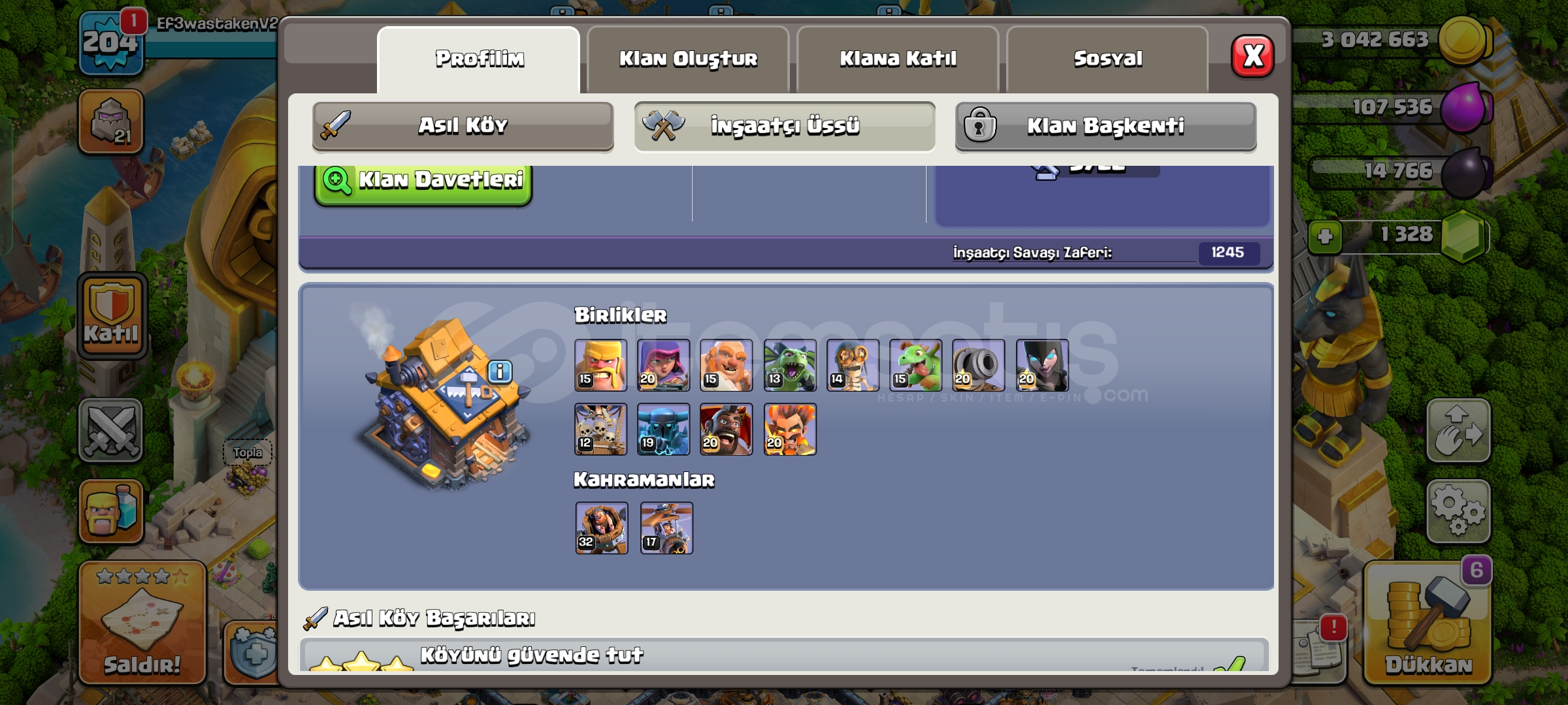 Uzun süredir girmediğim kendi yan hesabımdır. Satmaya karar verdim. Hesapta düzgün oynayan biri birkaç ayda maxlayabilir