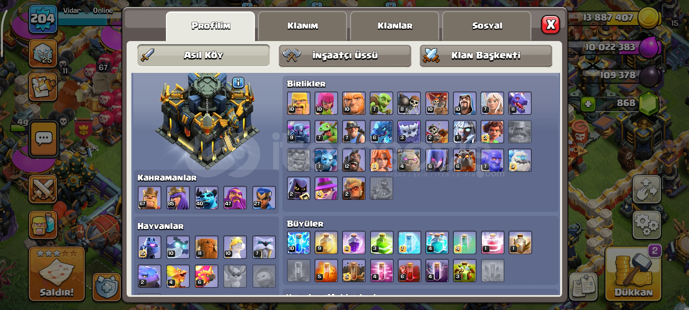 Bb 17 hesap 204 sv 8 kostüm 2 arka planlı 1053 savaş yıldızlı Çırak 3-8-3 387 lig madalyalı Büyülü öğeler mevcuttur Demirci harikası Detaylı bilgi için mesaj atınız yeterlidir
