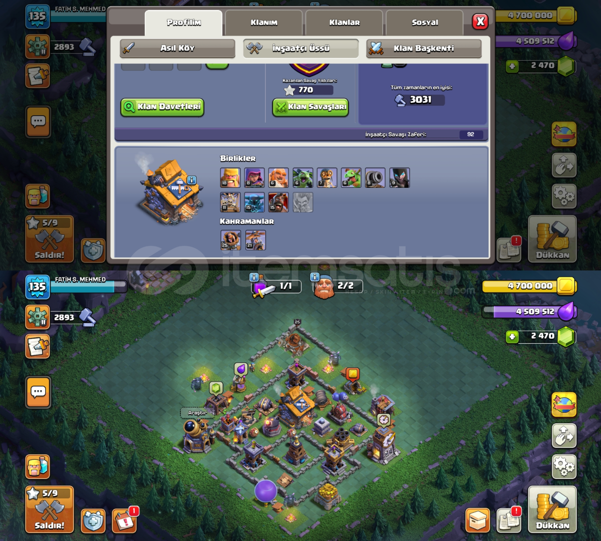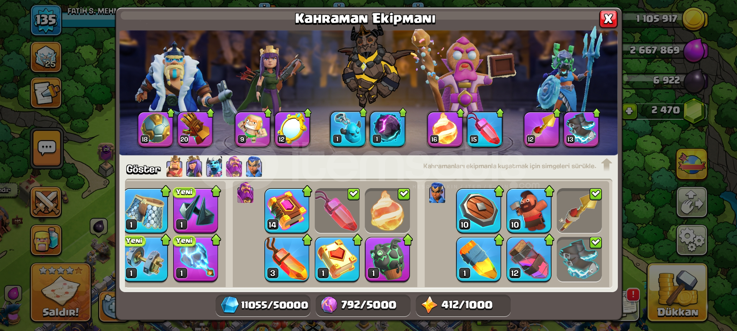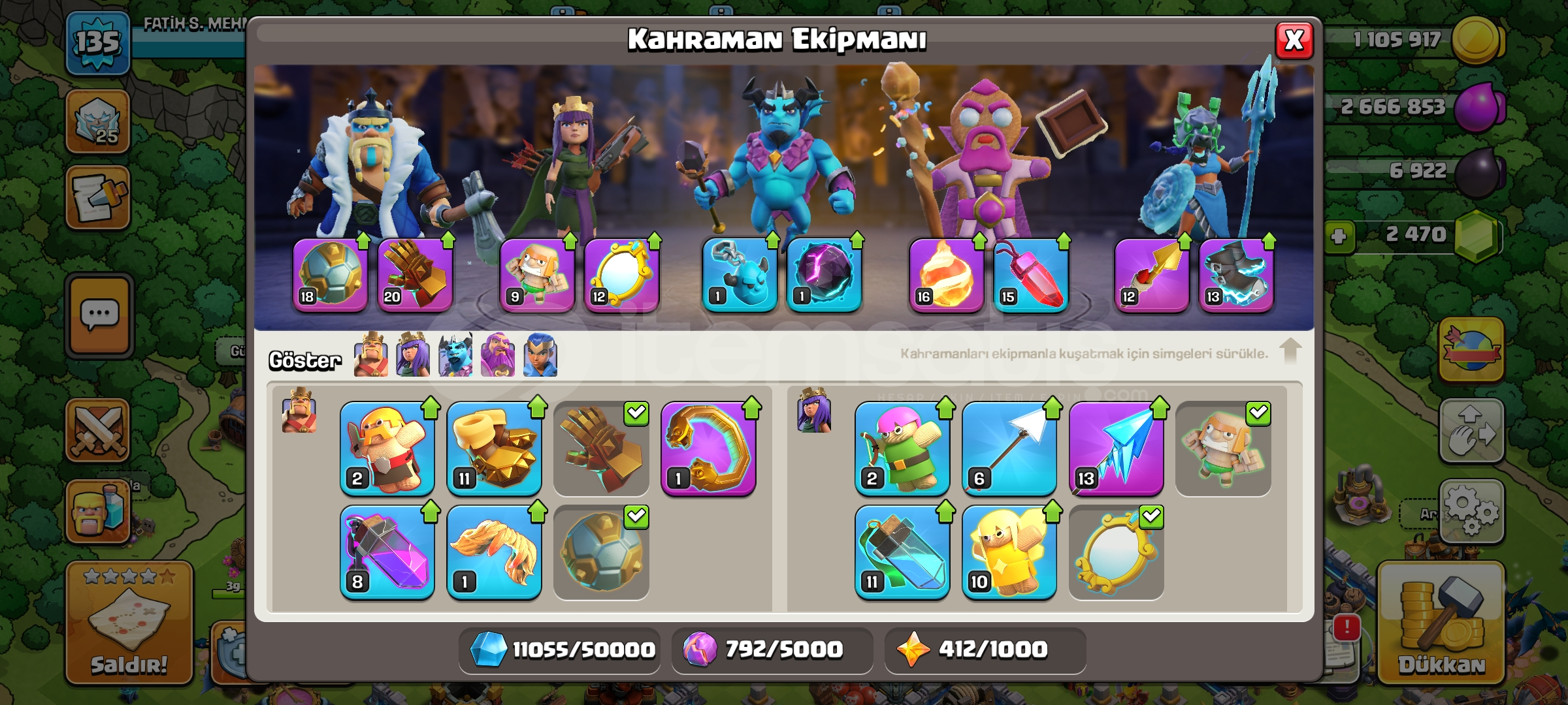 Bb 17 hesap 2470 taşlı 6 inşaatcılı 770 savaş yıldızlı +5 kostümlü Ekstra ekipmanlar -Dev eldiven -Dikenli top -Yılan bilekli -Donmuş ok -Sihirli ayna -Aksiyon figürü -Alev topu -Balon kuklası -Elektiro çizme -Roket mızrak İD'SİZ Anında teslim