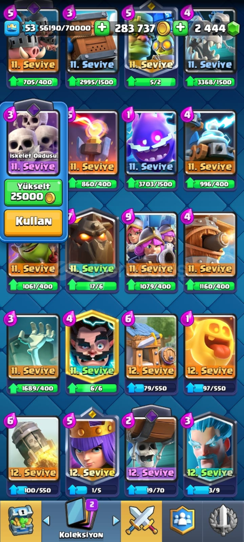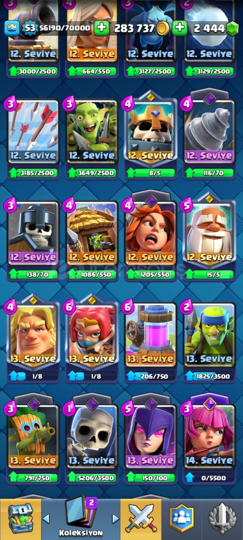 Hesap çok az duvar ve bir kaç şarj yükseltmeleri kaldı onun dışında bol skinli fulle yakındır. Alacak arkadaşa şimdiden hayırlı olsun. Clash royale hesabıda bulunmaktadır.