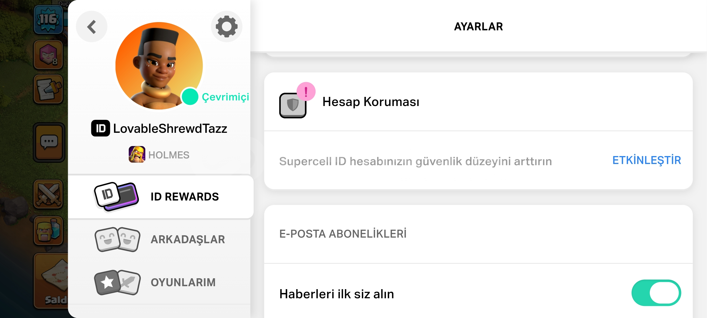 Hesap koruması yok klan için veya aktif ana hesaplık