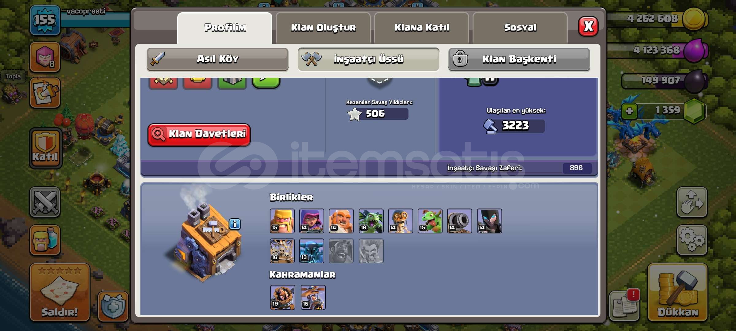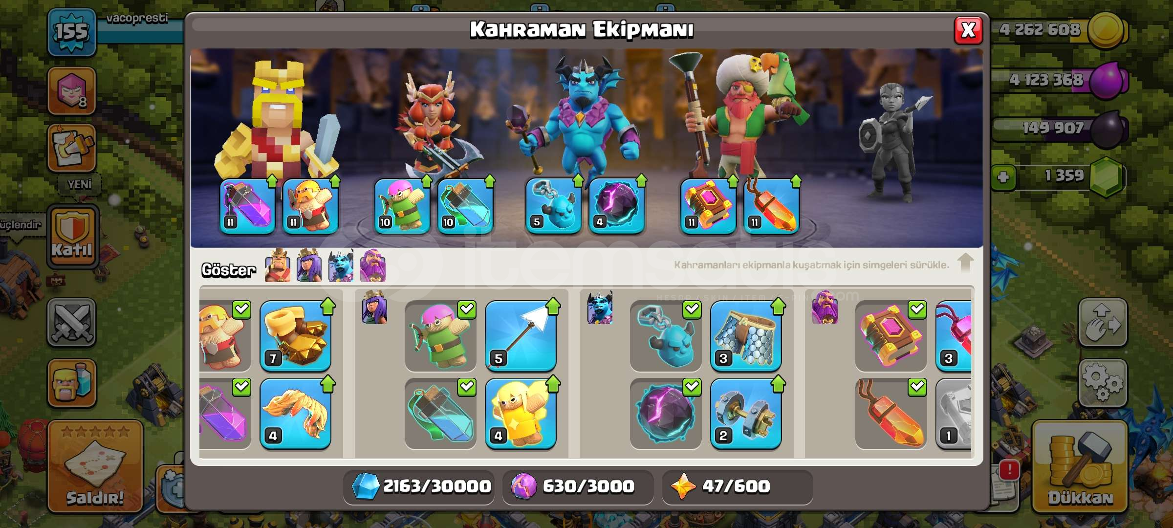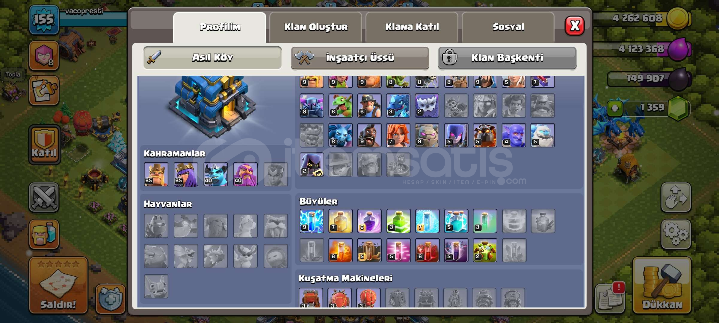 ⭐7/24 Otomatik Teslimattır, bizi beklemenize kesinlikle gerek yoktur tüm işlemler otomatiktir.-⭐[BB12] FULL MAX + MAX MÜKEMMEL HESAP-Satın alacağınız ürün ile alakalı detaylı bilgi aşağıda verilmiştir:> BELEDİYE BİNASI 12> 155 SEVİYE> 1359 YEŞİL TAŞ VARDIR> 433 LİG MADALYASI VARDIR> BARBAR KRAL SKİNLERİ : PİKSEL KRAL> OKÇU KRALİÇE...