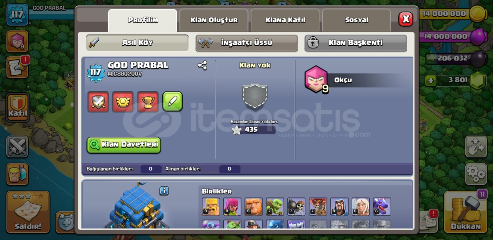 💎 Detaylar:• Seviye 117 Hesap• 3800 Elmas Kullanıma Hazır 💎• 5 İnşaatçı Açılmış 🏗️• Otomatik Teslimat 🚀• Mail + Şifre Verilir 🔑