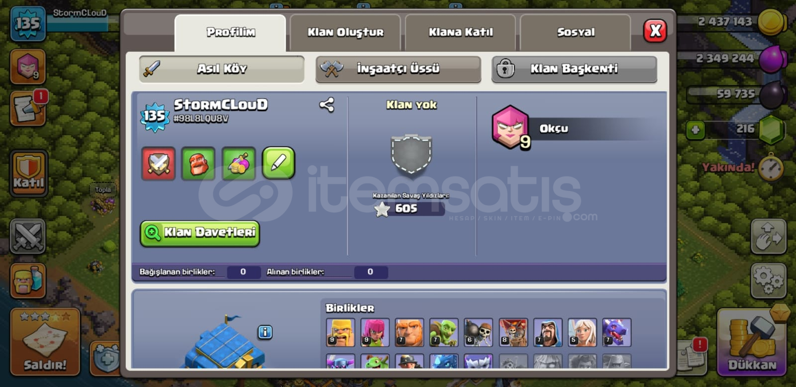 💎 Detaylar:• Seviye 135 Hesap• 216 Elmas Kullanıma Hazır 💎• 5 İnşaatçı Açılmış 🏗️• Otomatik Teslimat 🚀• Mail + Şifre Verilir 🔑