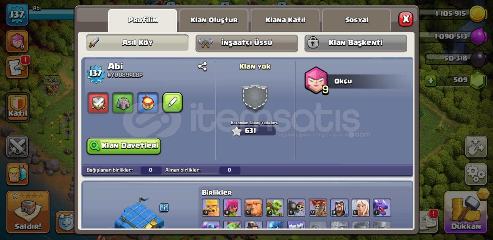 💎 Detaylar:• Seviye 137 Hesap• 509 Elmas Kullanıma Hazır 💎• 5 İnşaatçı Açılmış 🏗️• Otomatik Teslimat 🚀• Mail + Şifre Verilir 🔑