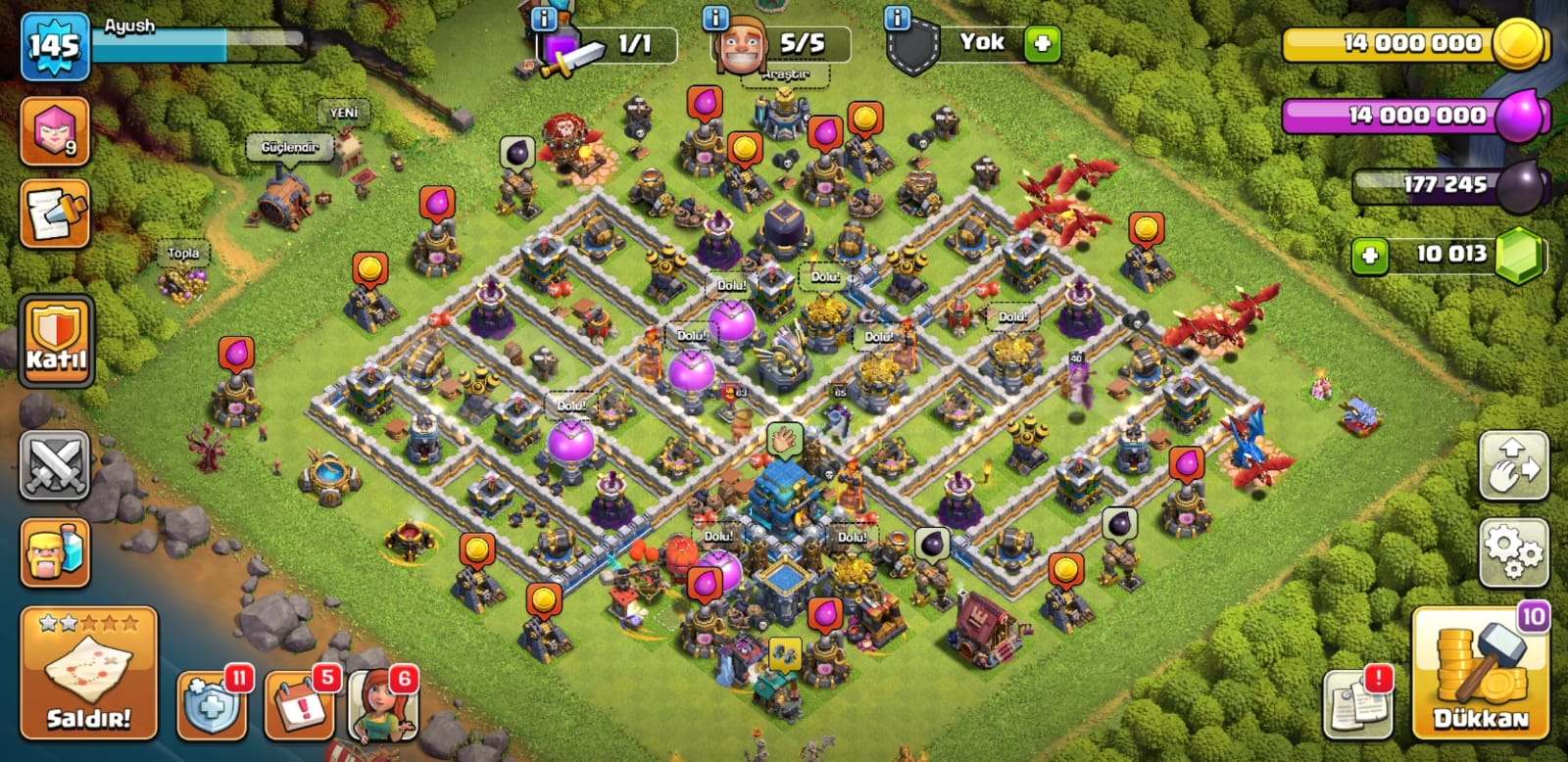 hesap 13yas hesabıdır yüksek lvl klanlara giremiyor kendi klaninizsa düşürmeniz lazi.m piyasa fiyatı 450 500tl hesaptır 10k gemli çok değerli bir hesaptır