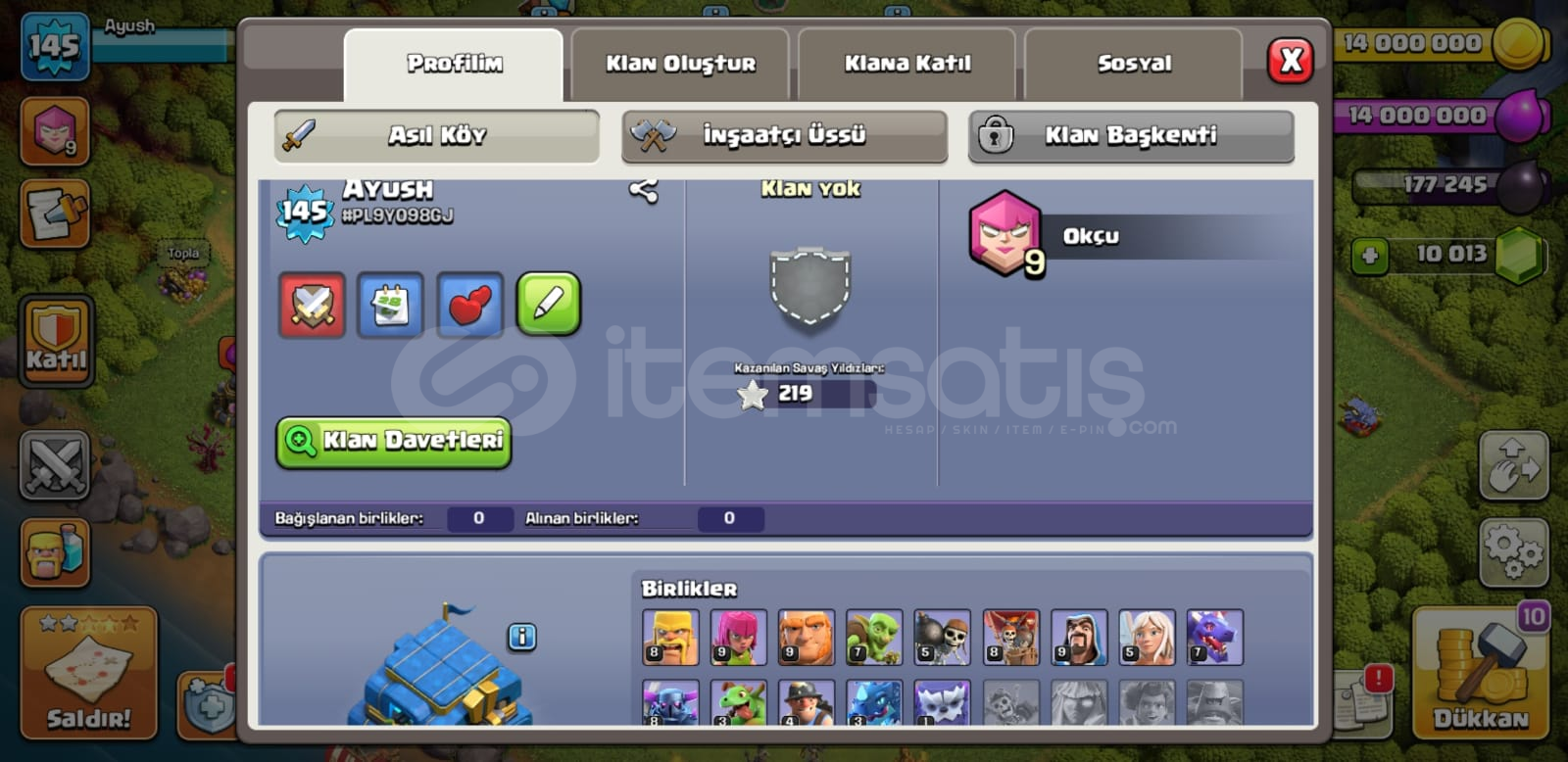 💎 Detaylar:• Seviye 145 Hesap• 10000 Elmas Kullanıma Hazır 💎• 5 İnşaatçı Açılmış 🏗️• Otomatik Teslimat 🚀• Mail + Şifre Verilir 🔑hesap 13yas hesabıdır yüksek lvl klanlara giremiyor kendi klaninizsa düşürmeniz lazi.m piyasa fiyatı 450 500tl hesaptır 10k gemli çok değerli bir hesaptır