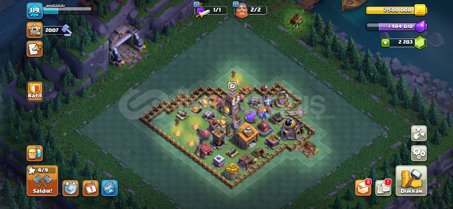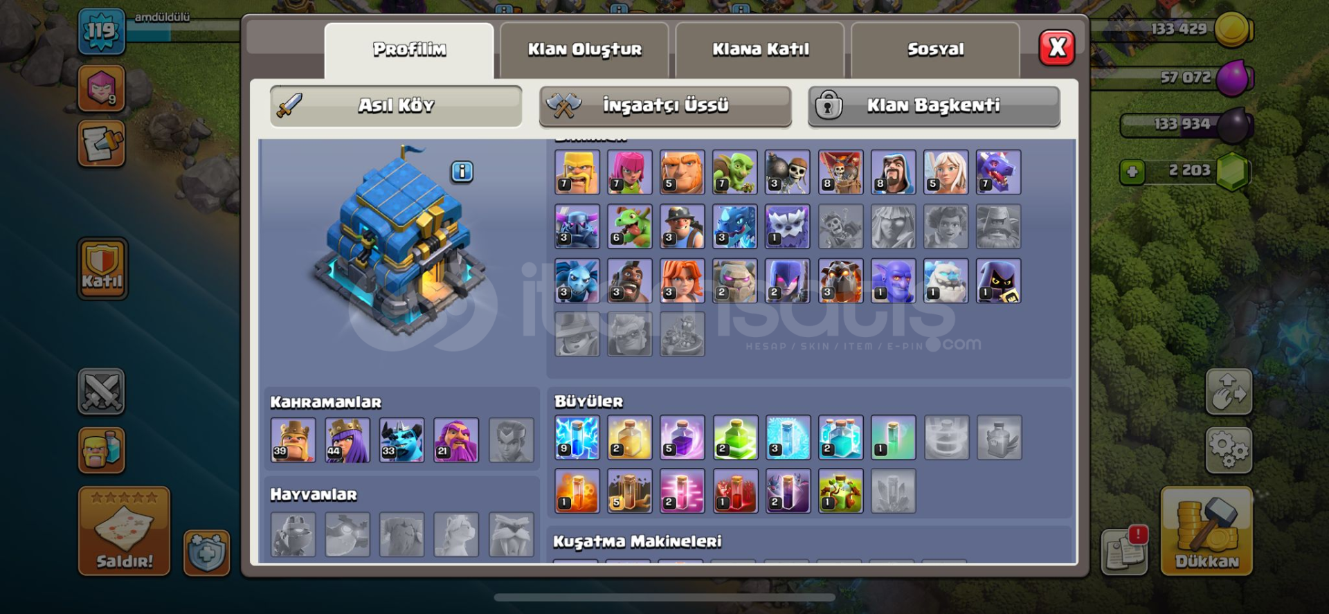 Clash of Clans 119 level Bb12 max’a yakın İkinci köy th6Kahramanlar 39-44-33-21Mail ile devredilir 2200 taş Brawl stars 32.5k kupa 81 karakter 124 kostümMail devredilir 11 elmas 7 efsanevi karakter