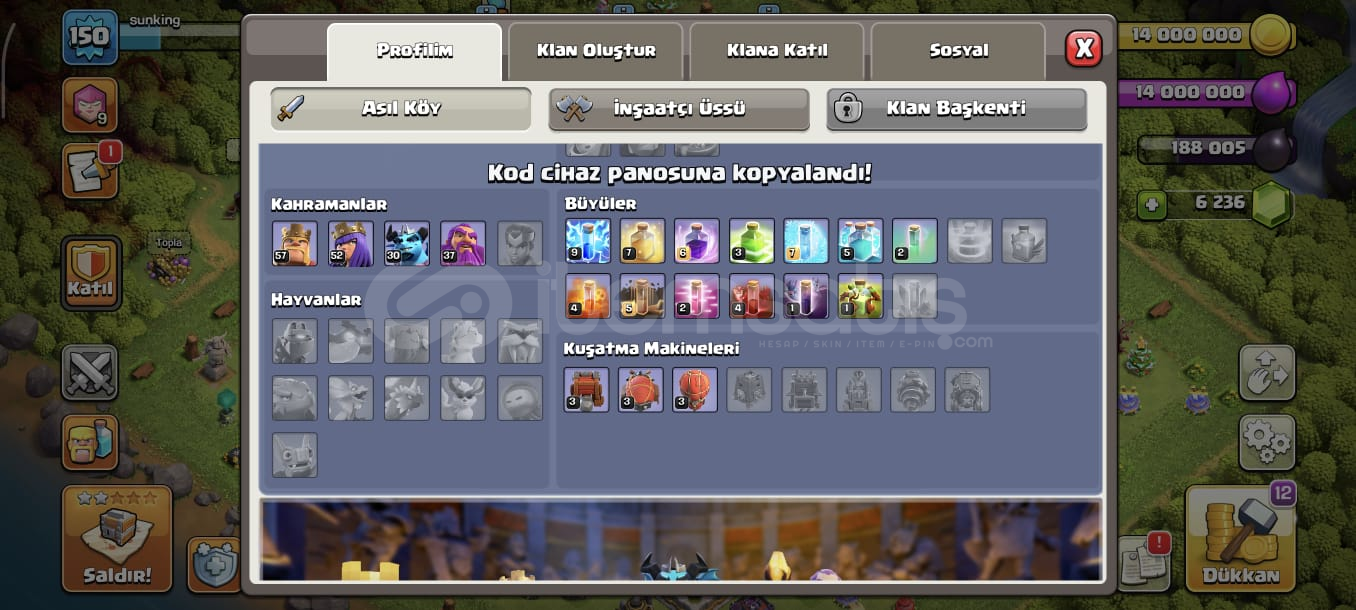 Hesaba detaylıca bakmak için:#8U8YULR9PHesaplar asla geri çekilmez!Hesap koruması aktif değildir!Yeni güncelleme sebebiyle sezon geçişlerinde CLASH ROYALE HESAPLARINDA kupa kaybı yaşanabiliyor bilginize.Sipariş Sonrasında oluşacak sonular için kalıcı destek!"Neden beni tercih etmelisiniz?"+660 Başarılı işlem.Yüksek müşteri memnuniyeti.Supercell oyunu içinde 500+ Fazl...