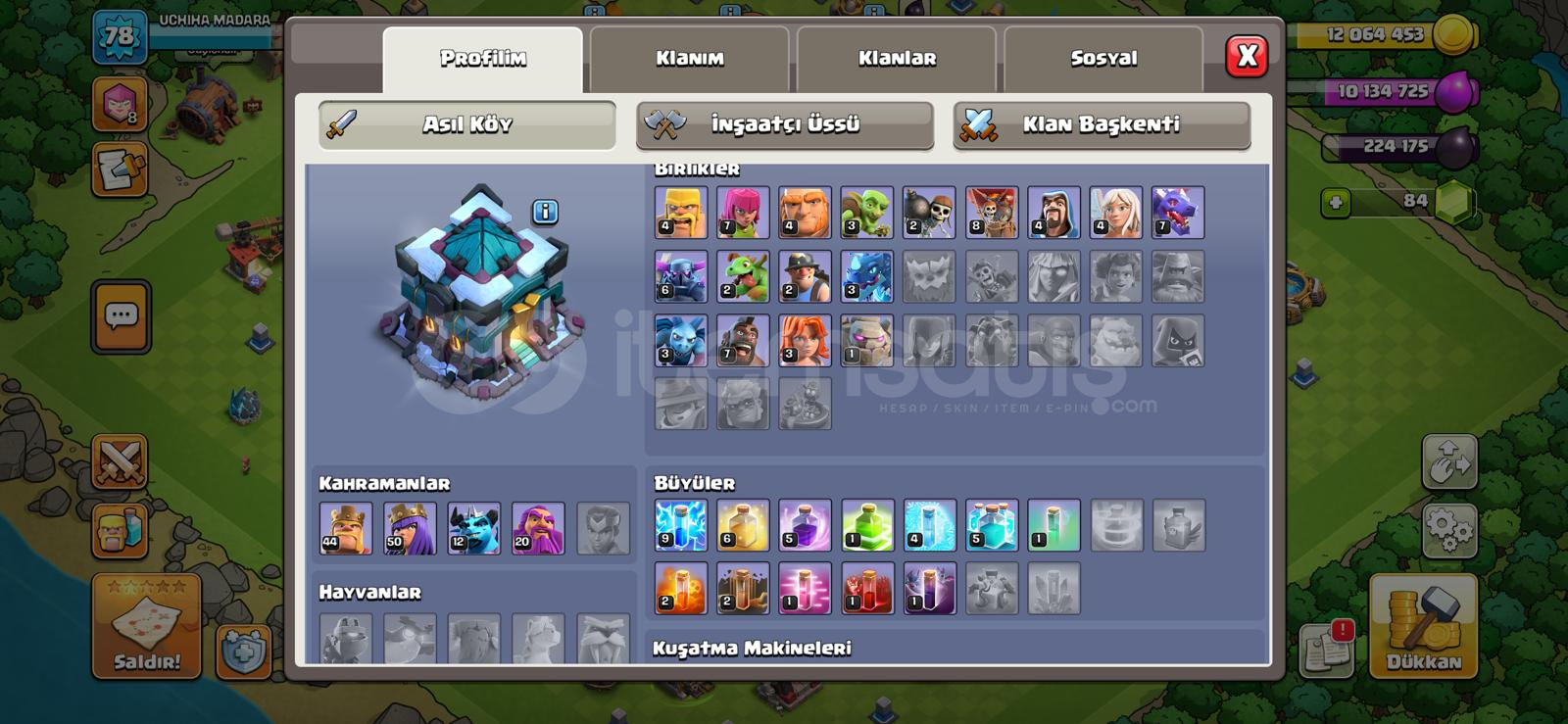 78 level Bb13 yarı maxİkinci köy th7Kahramanlar 44-50-12-20Mail ile devredilir Depolar fullÖmür boyu garanti