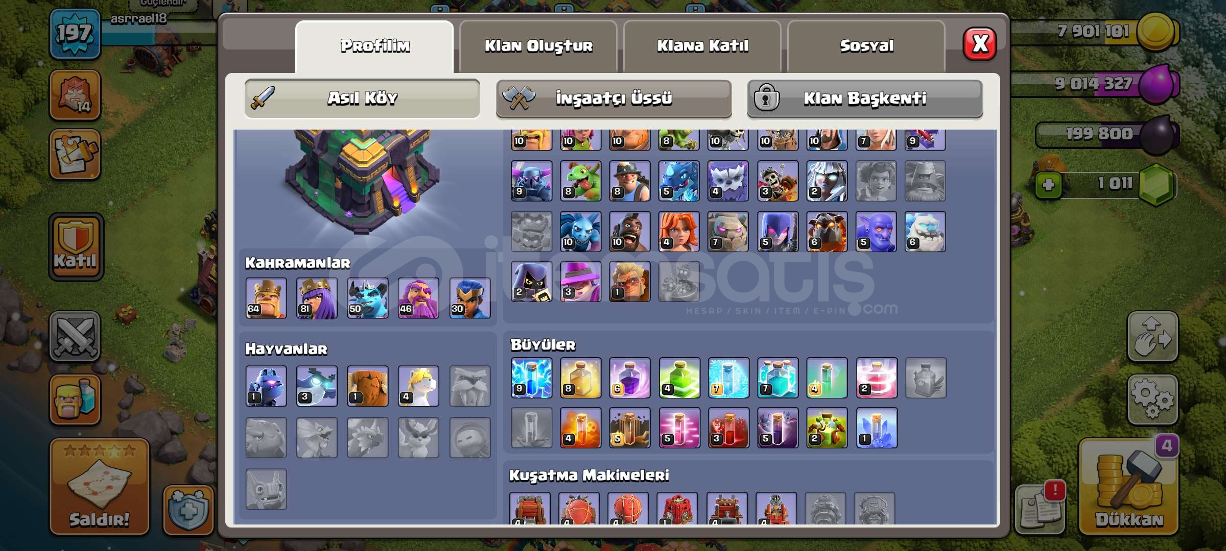 ⭐7/24 Otomatik Teslimattır, bizi beklemenize kesinlikle gerek yoktur tüm işlemler otomatiktir.-⭐[BB14] 11 SKİNLİ EFSANE HESAP-Satın alacağınız ürün ile alakalı detaylı bilgi aşağıda verilmiştir:> BELEDİYE BİNASI 14> 197 SEVİYE> 1011 YEŞİL TAŞ VARDIR> 884 LİG MADALYASI VARDIR> BARBAR KRAL SKİNLERİ : CANAVAR KRAL, PİKSEL KRAL, YILBAŞI KRAL, ...
