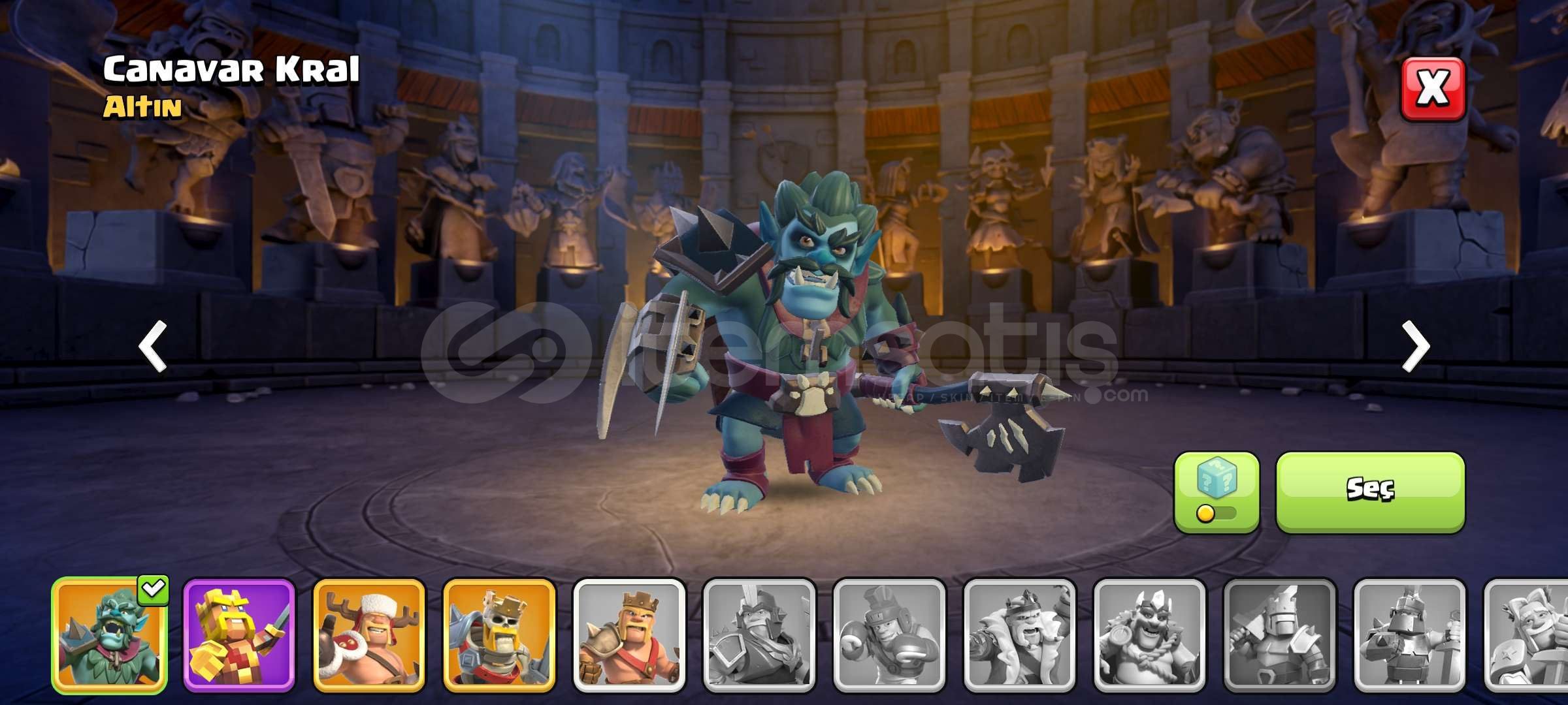 • > BARBAR KRAL SKİNLERİ : CANAVAR KRAL, PİKSEL KRAL, YILBAŞI KRAL, İSKELET KRAL