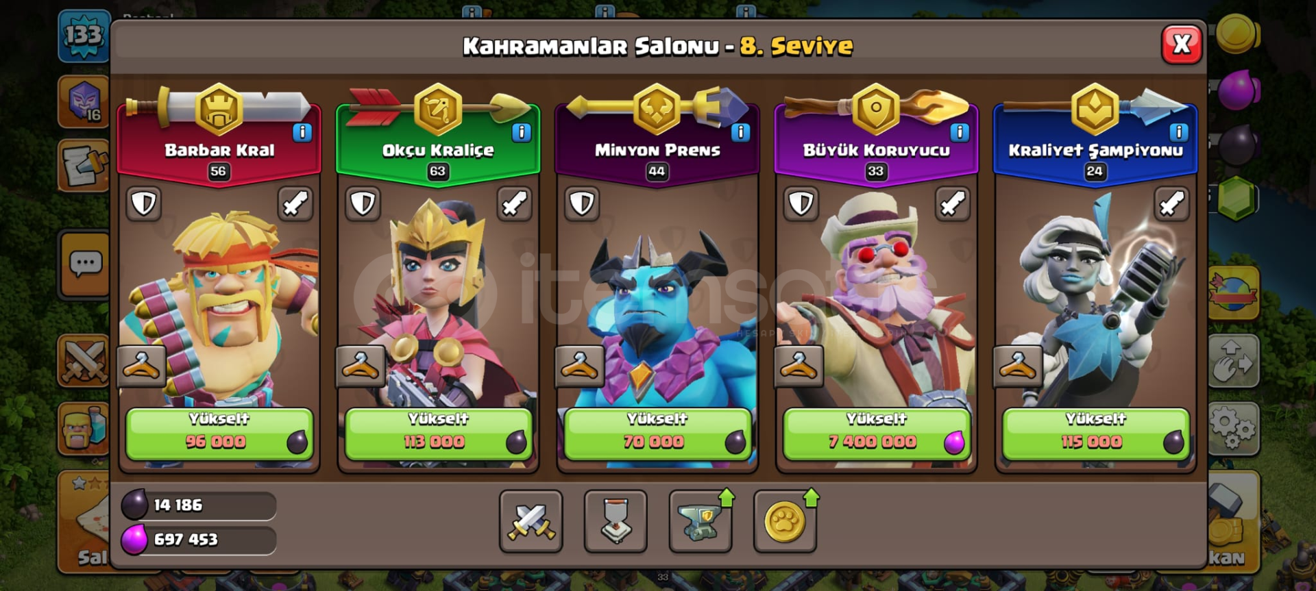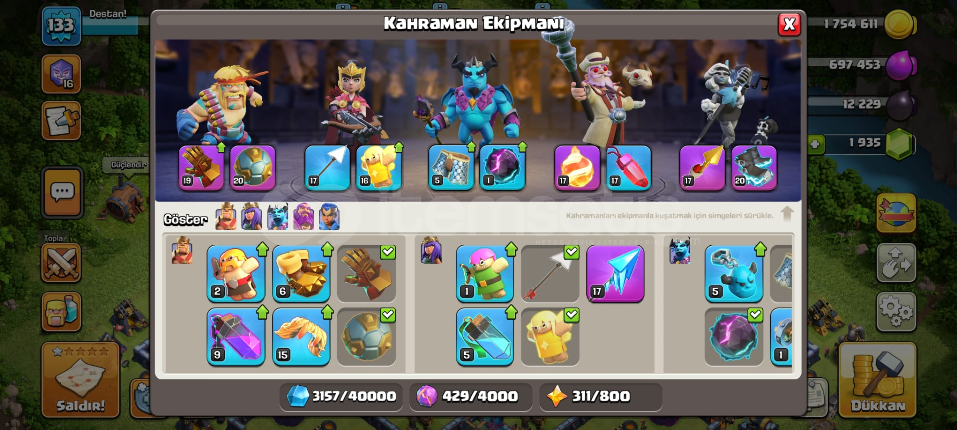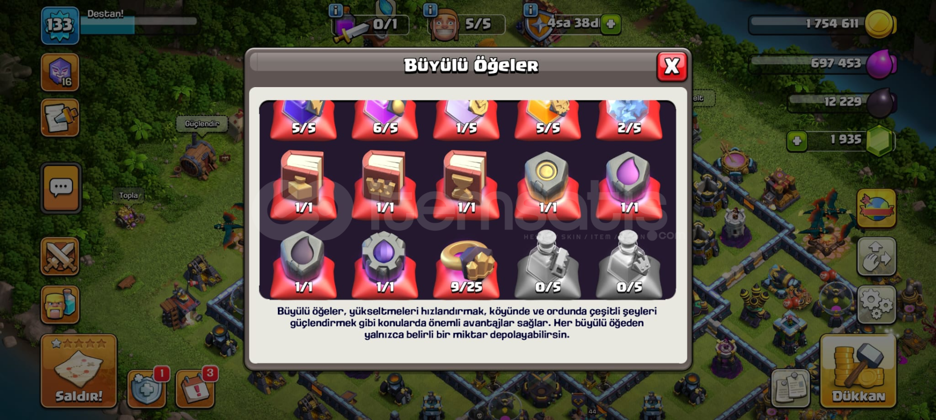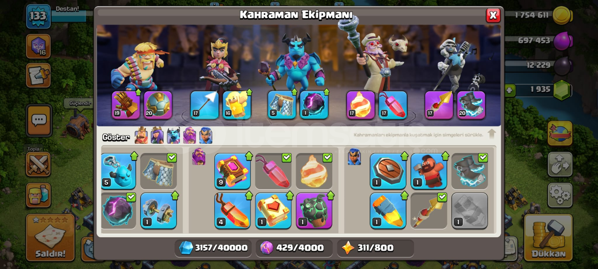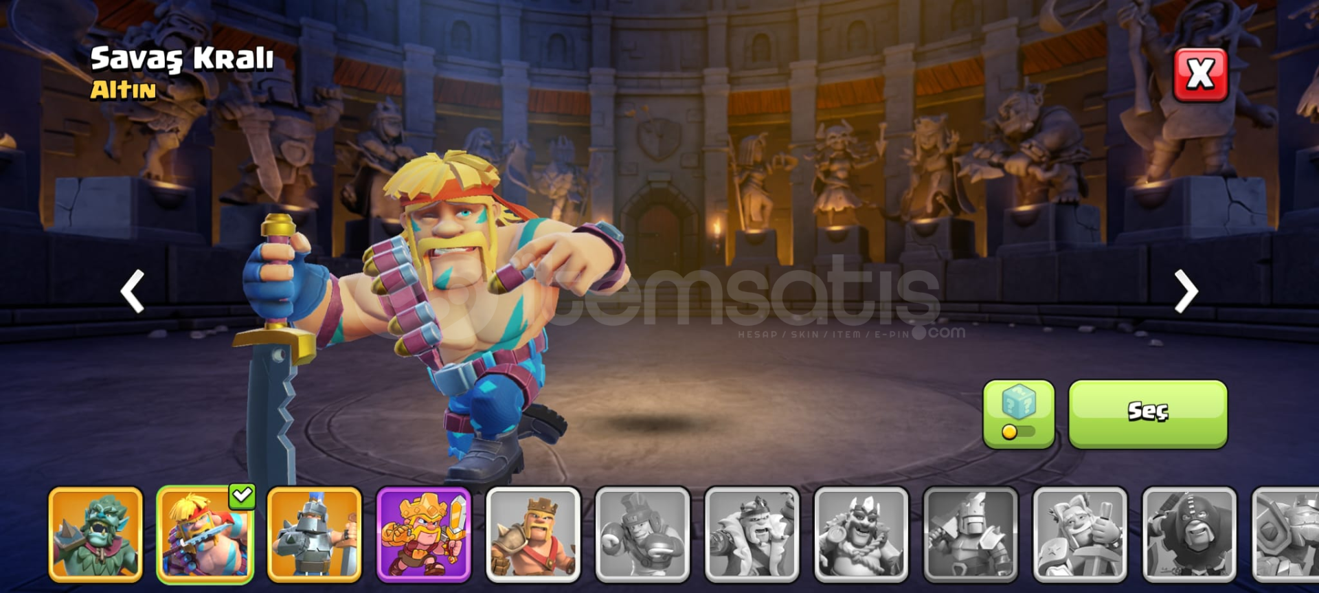 Hesapta 800lig madalyası , 2k yeşil taş , 7 kostüm , 1paralı arka plan , demircisi Max+maxtır , sadece mail bağlıdır koruma yoktur , sizin vereceğiniz maile bağlanacaktır.Pazarlik olur...