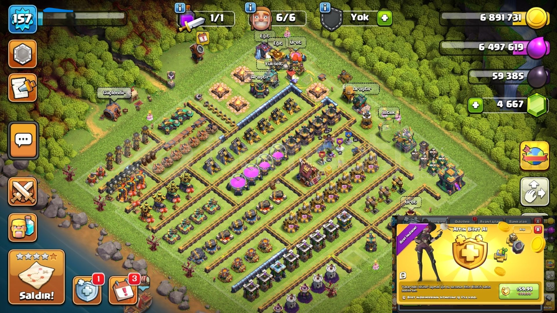 157 LEVEL 4670 TAŞ , DUVARLAR NERDEYSE MAX , 1 SKİN.BOL BOL EKİPMAN.HESAP TELEFON NUMARASINA BAĞLIDIR ALMADAN ÖNCE YAZMANIZI ...