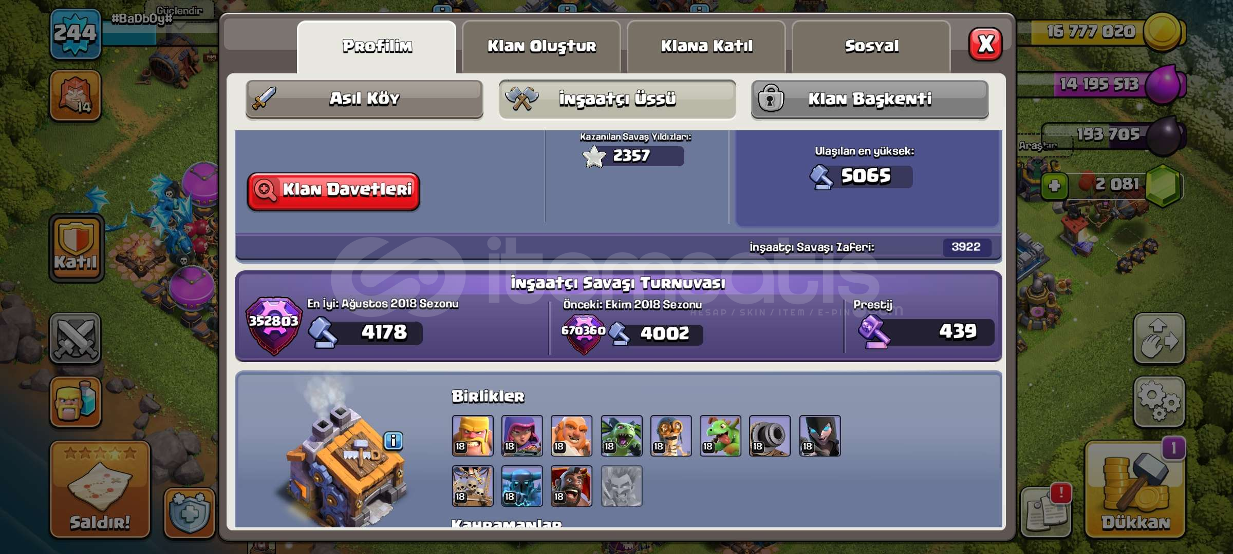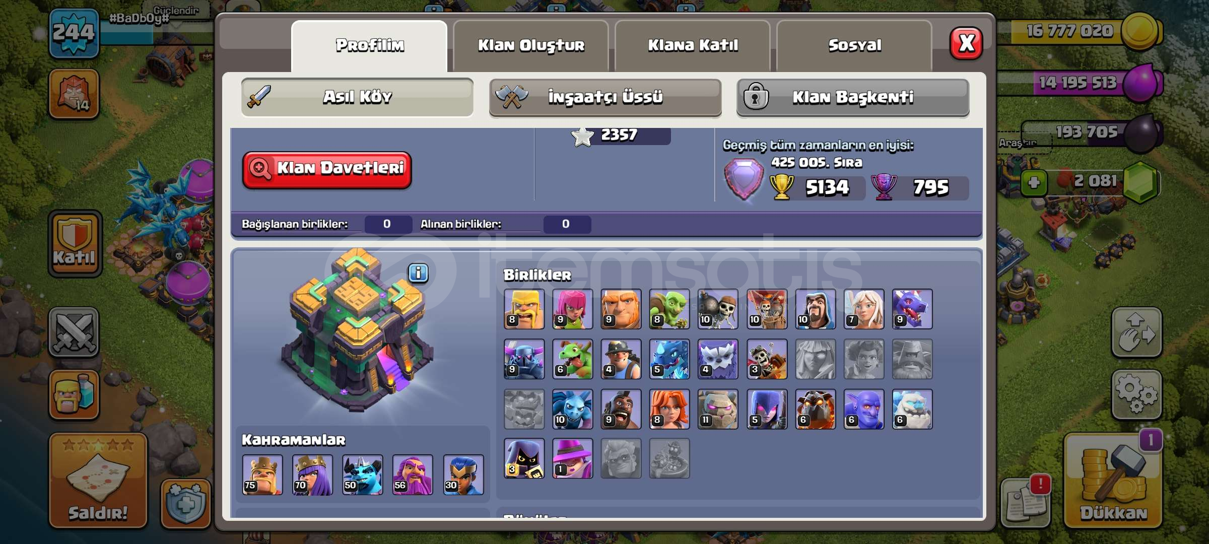 ⭐7/24 Otomatik Teslimattır, bizi beklemenize kesinlikle gerek yoktur tüm işlemler otomatiktir.-⭐[BB14] MÜKEMMEL FIRSAT HESABI-Satın alacağınız ürün ile alakalı detaylı bilgi aşağıda verilmiştir:> BELEDİYE BİNASI 14> 244 SEVİYE> 2081 YEŞİL TAŞ VARDIR> 516 LİG MADALYASI VARDIR-> MAİL İLE VERİLECEKTİR.> DETAYLAR İÇİN DM.PROFİ...
