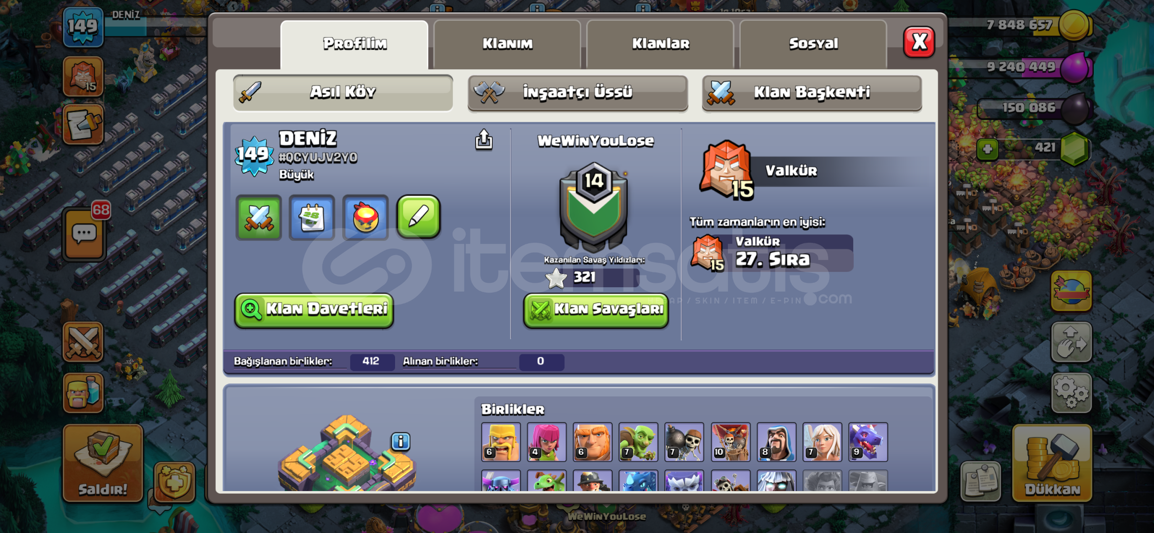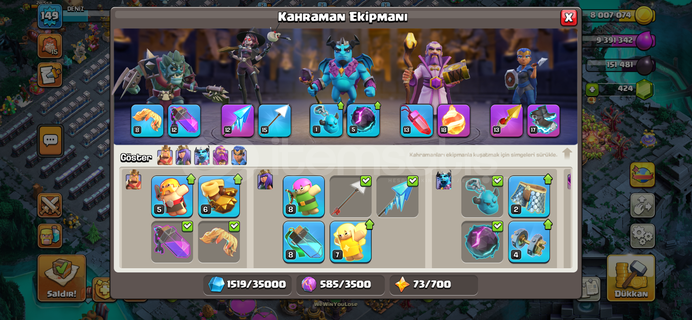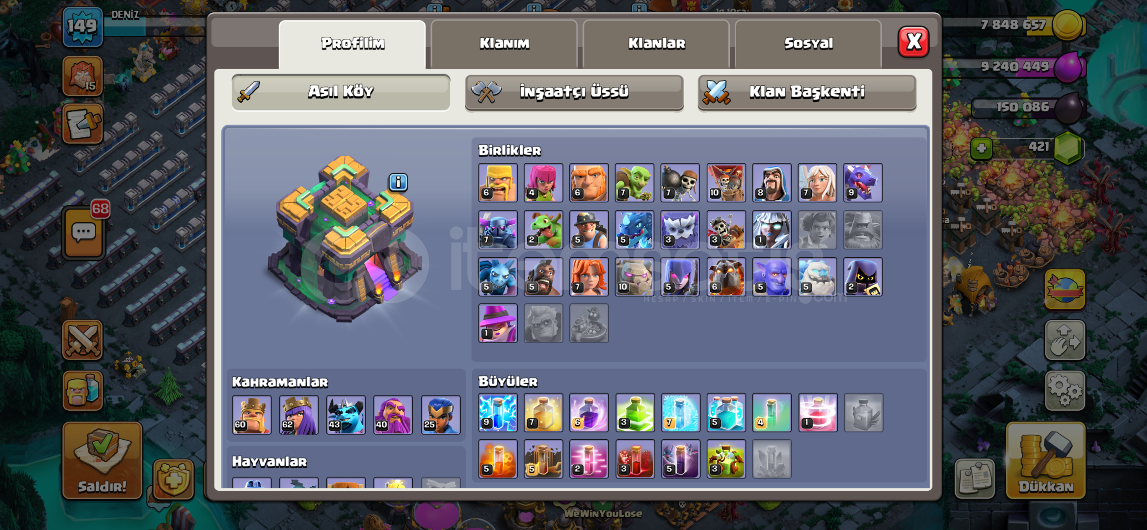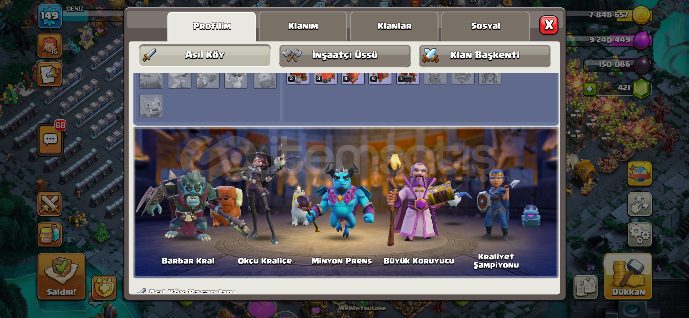 Hesapta altın bilet açıktır hayalet arka plan mevcut 2 tane kraliçe 1 tane barbar kral kostümü var indirim yapılır
