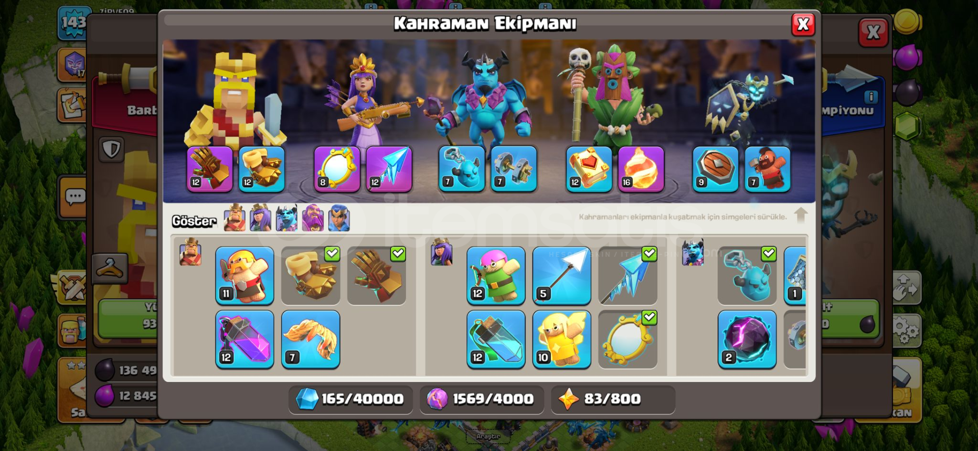 5 KAHRAMAN KOSTÜMÜ 4 EPİK EKİPMAN VAR 600 ELMAS VAR