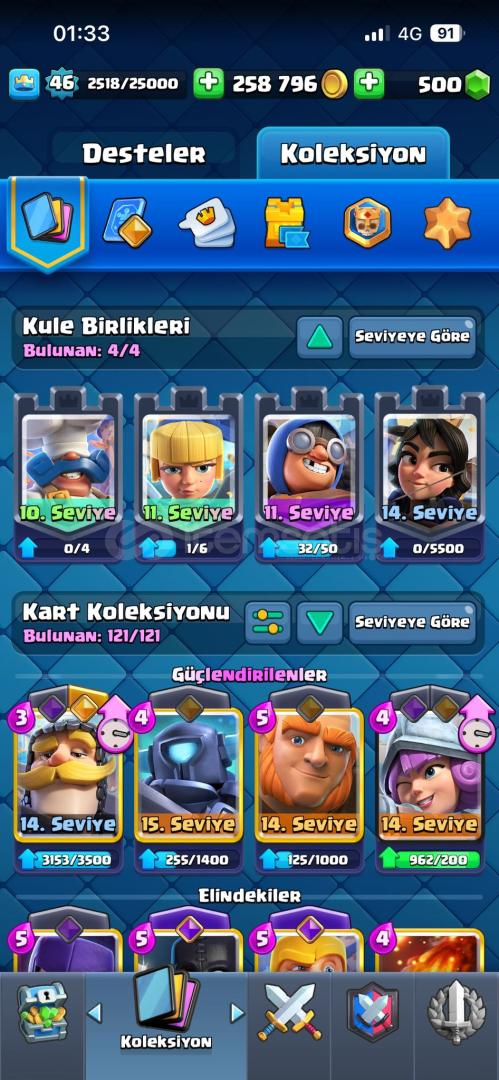 KULE SEVİYESİ SIRADAN 14LV 500 ELMAS 41 EMOJİ VAR 9 YILLIK HESAP ROZETİDE VAR.