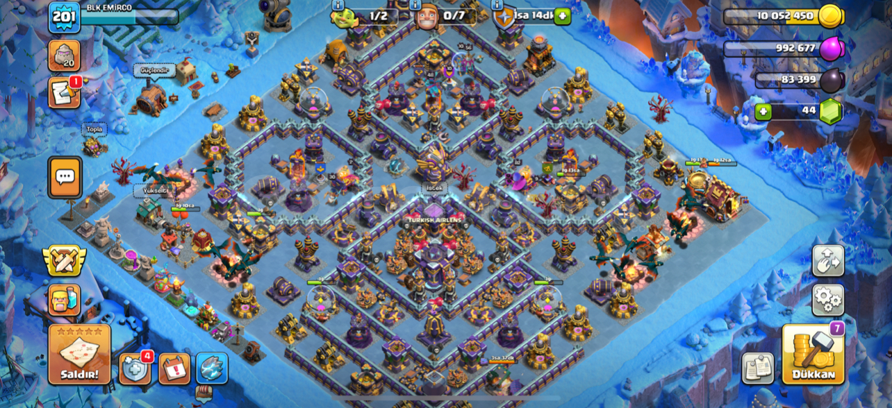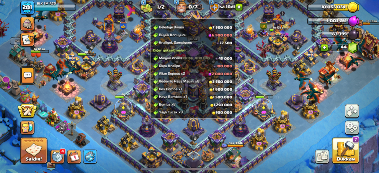 Savunma duvar kaynak genel olarak herşeyi maks sadece kalanlar heroların az bi seviyesi birde tuzaklar geri kalan herşey hazır kor...