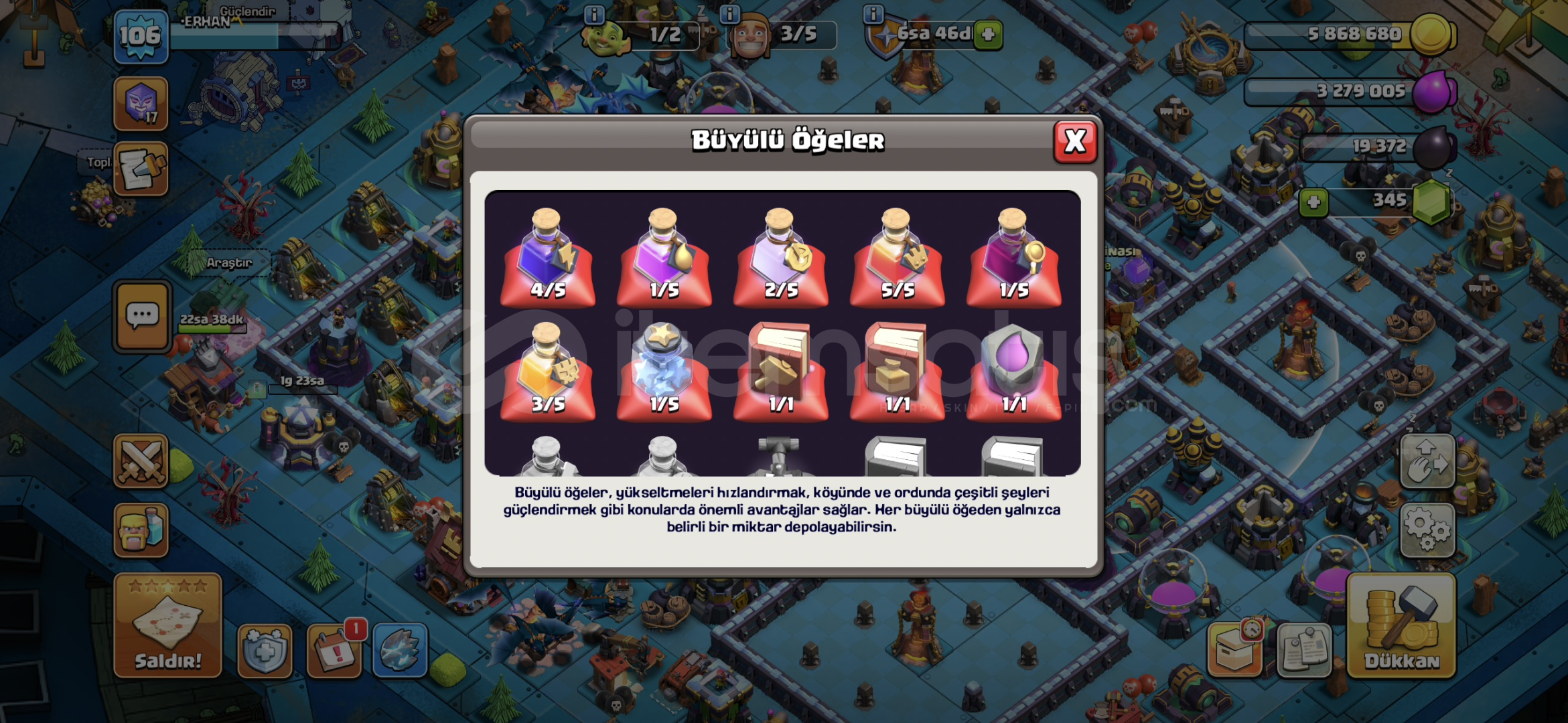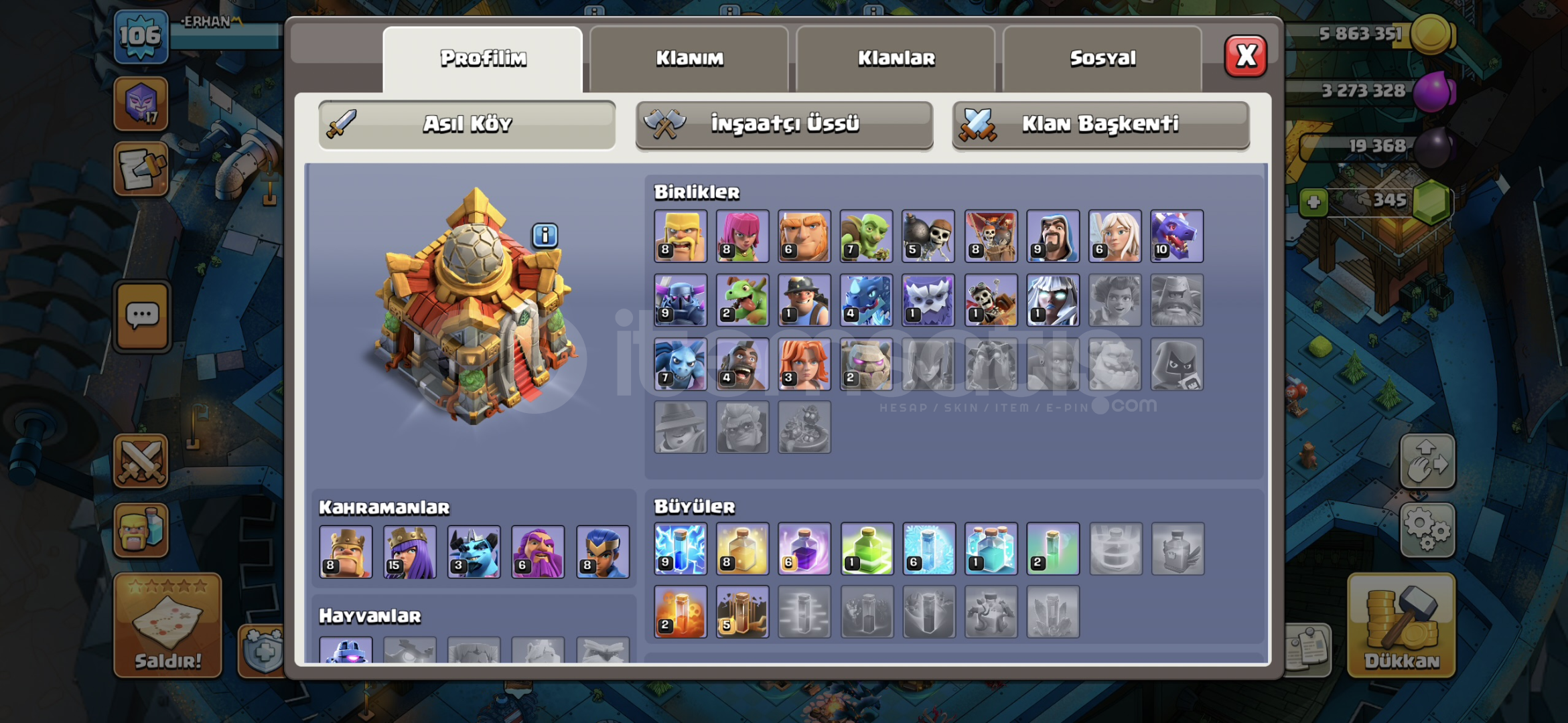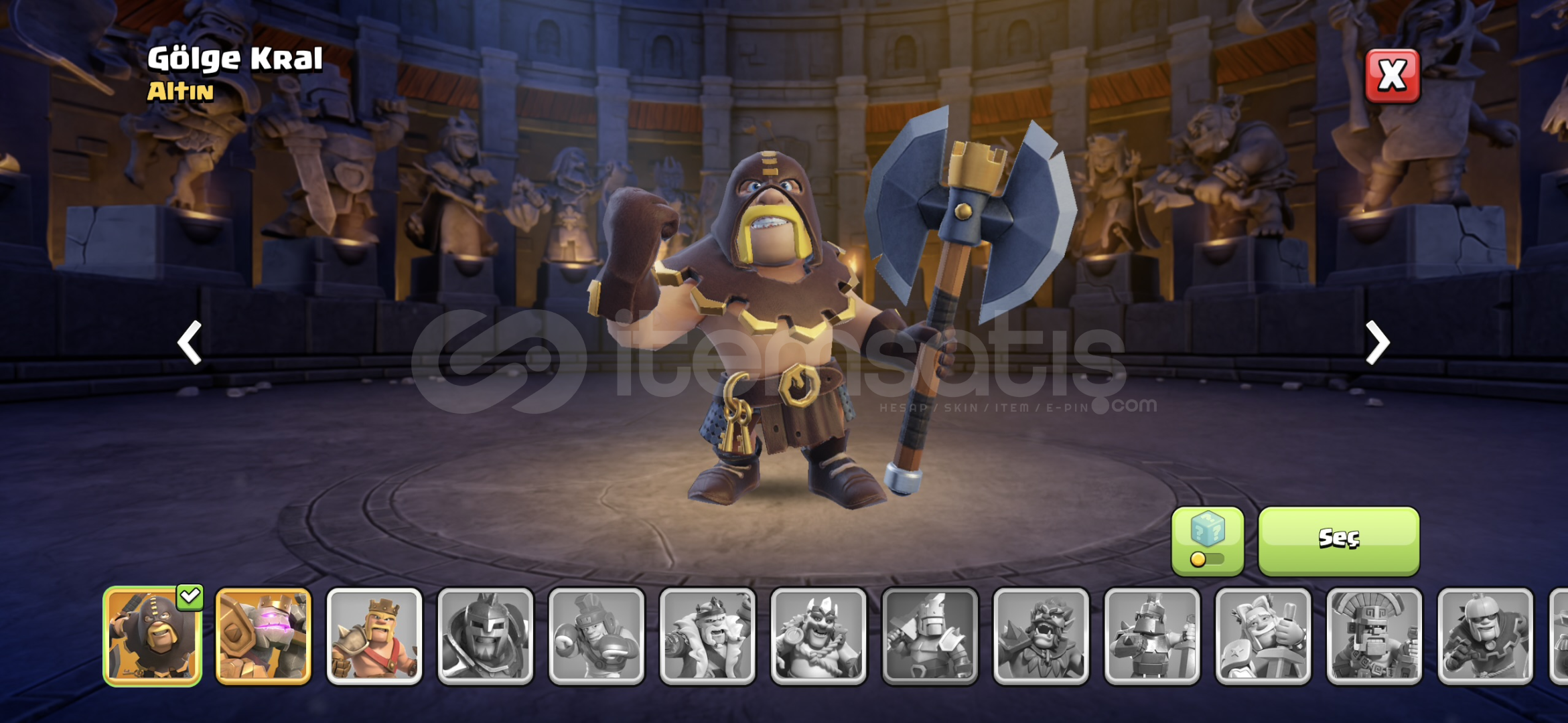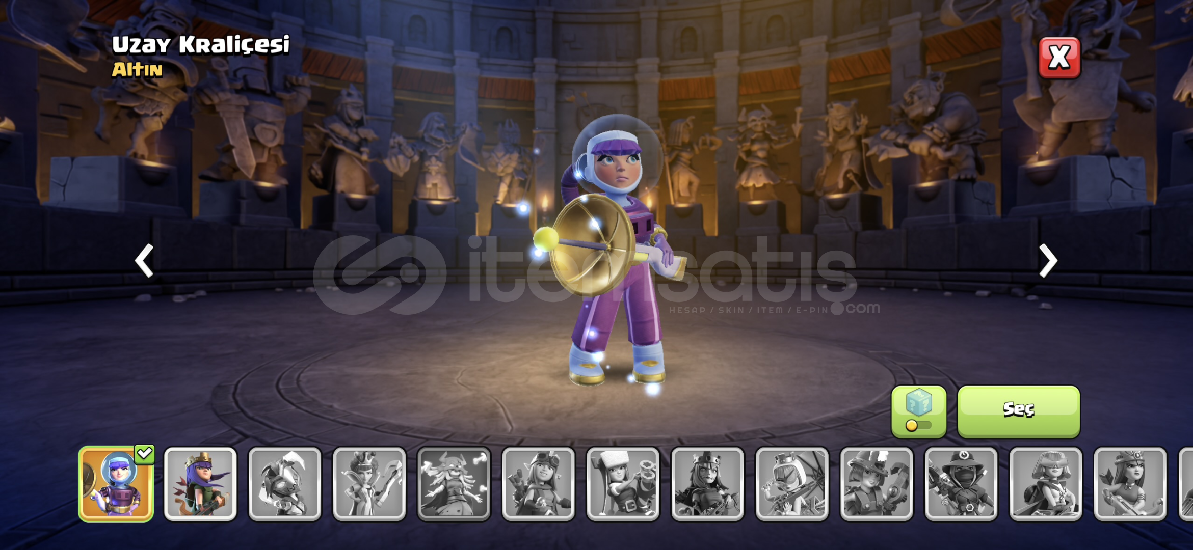 Yan hesap olarak kullanıyordum satmaya karar verdim herhangi bi sıkıntıdan dolayı değil yani supercell id ye bağlıdır hemen hemen her karakterde kostüm vardır XL arka plan mevcuttur alicisina hayırlı olsun şimdiden