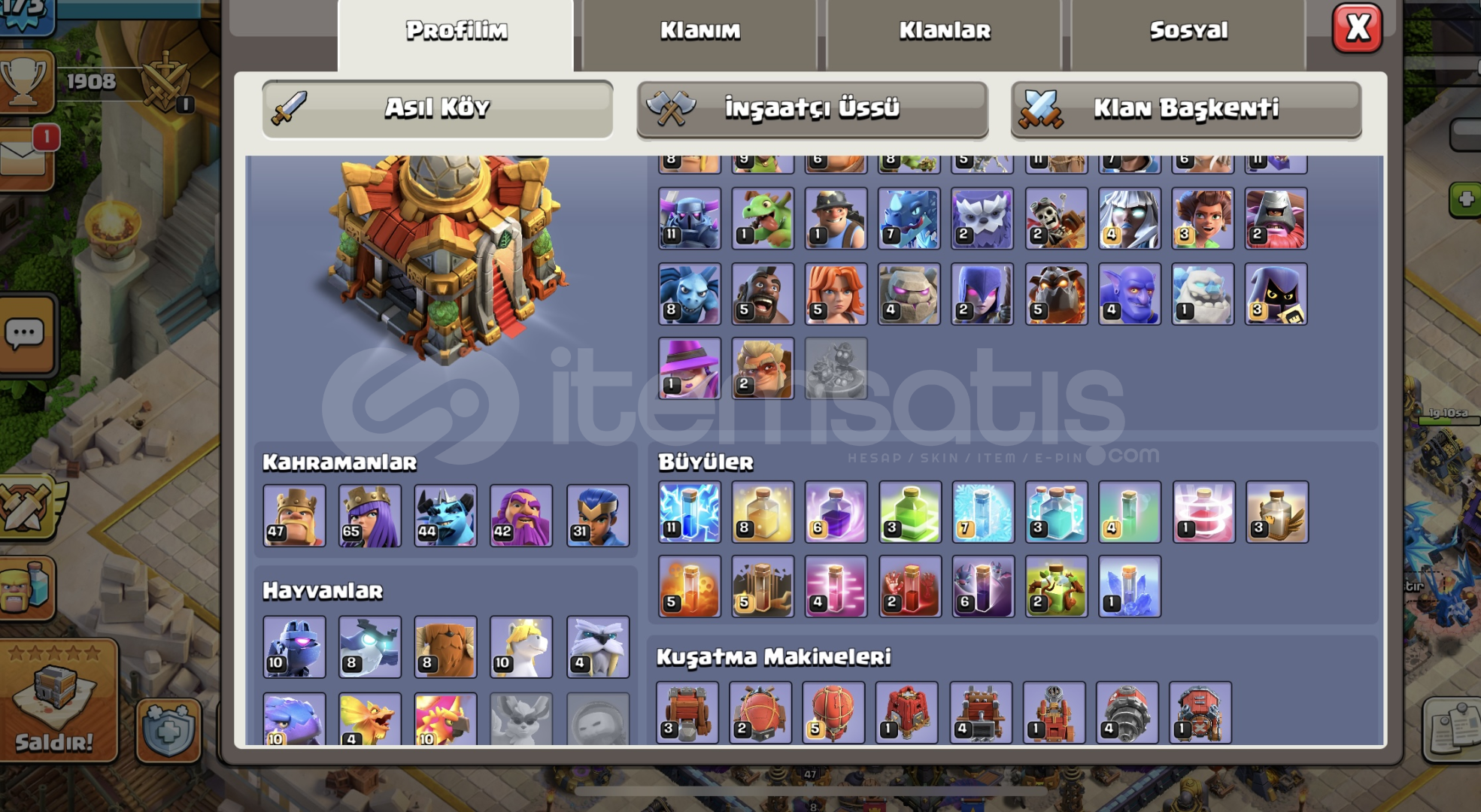bb16 köyün sağ tarafı maxtır üzerinde yazılıhayday 19. seviye aktif oynuyorum köylerimi bütün köyler en az 1 yıldır bende geri çekilme durumu söz konusu değildirmısır arka planlı9 kostüm 3ü efsanevi6 efsanevi kahraman ekipmanı seviyeli iyidirbol bol büyülü öğeli ve birazda başkent altını mevcutyan köy duvarlar hariç 10isim de...