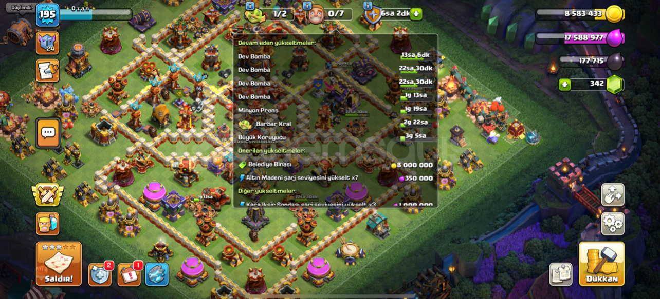 Hesapın sadece tuzak ve barbar kralın 3 5 seviyesi var Demirci olarak aranan tüm herşey var hesapta bu fiyata bu temizlikte başka yok