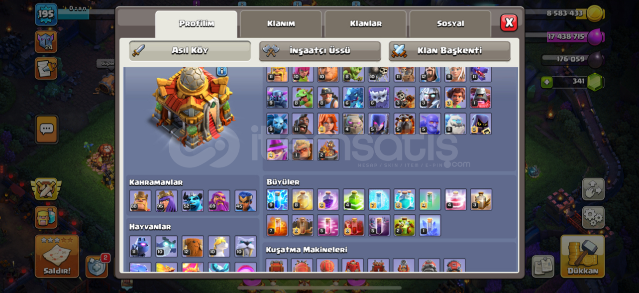 Hesapın sadece tuzak ve barbar kralın 3 5 seviyesi var Demirci olarak aranan tüm herşey var hesapta bu fiyata bu temizlikte ba#...