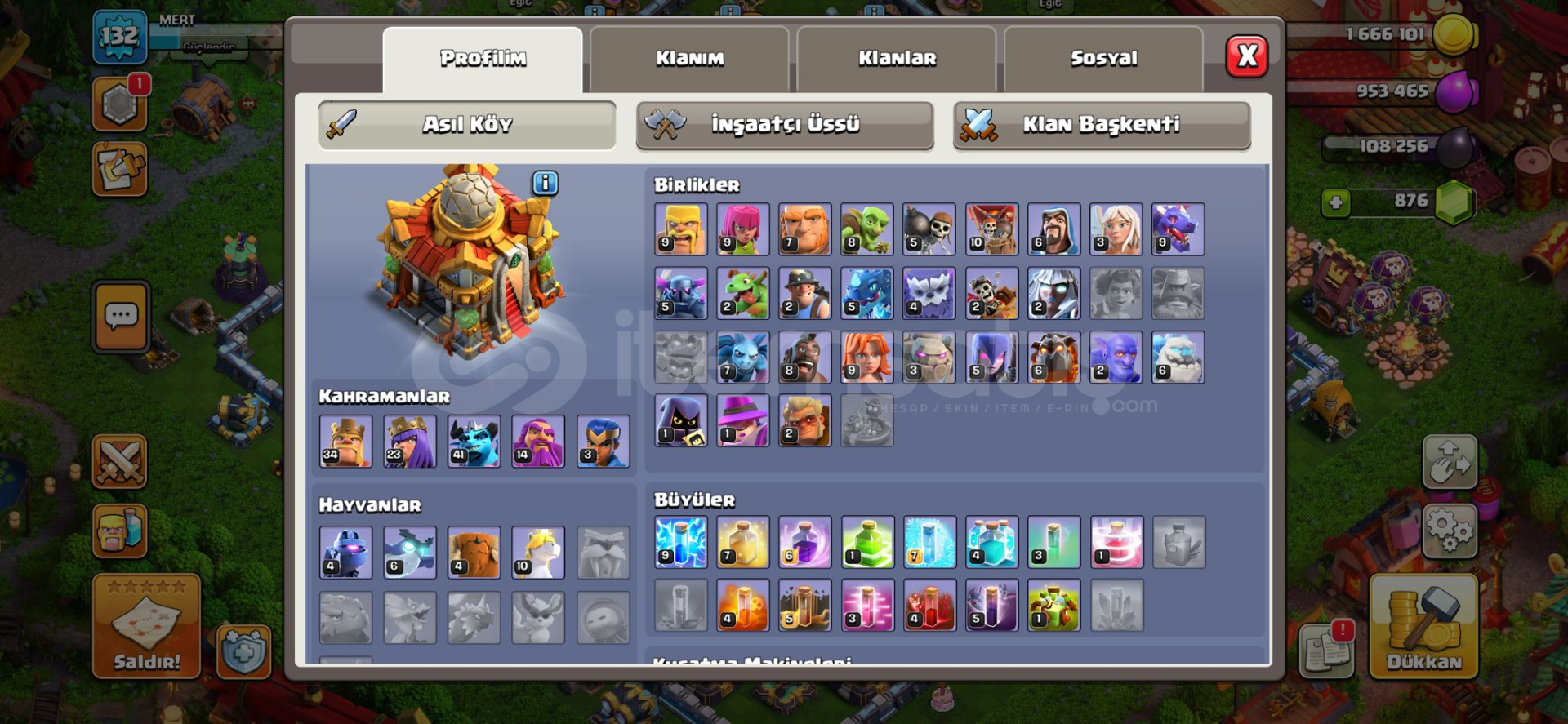132 level Bb16 yarı maxİkinci köy th7Kahramanlar 34-21-41-14-3Mail ile devredilir 876 taş7 kostüm Ömür boyu garanti4700 kupa Clash royale hesabı