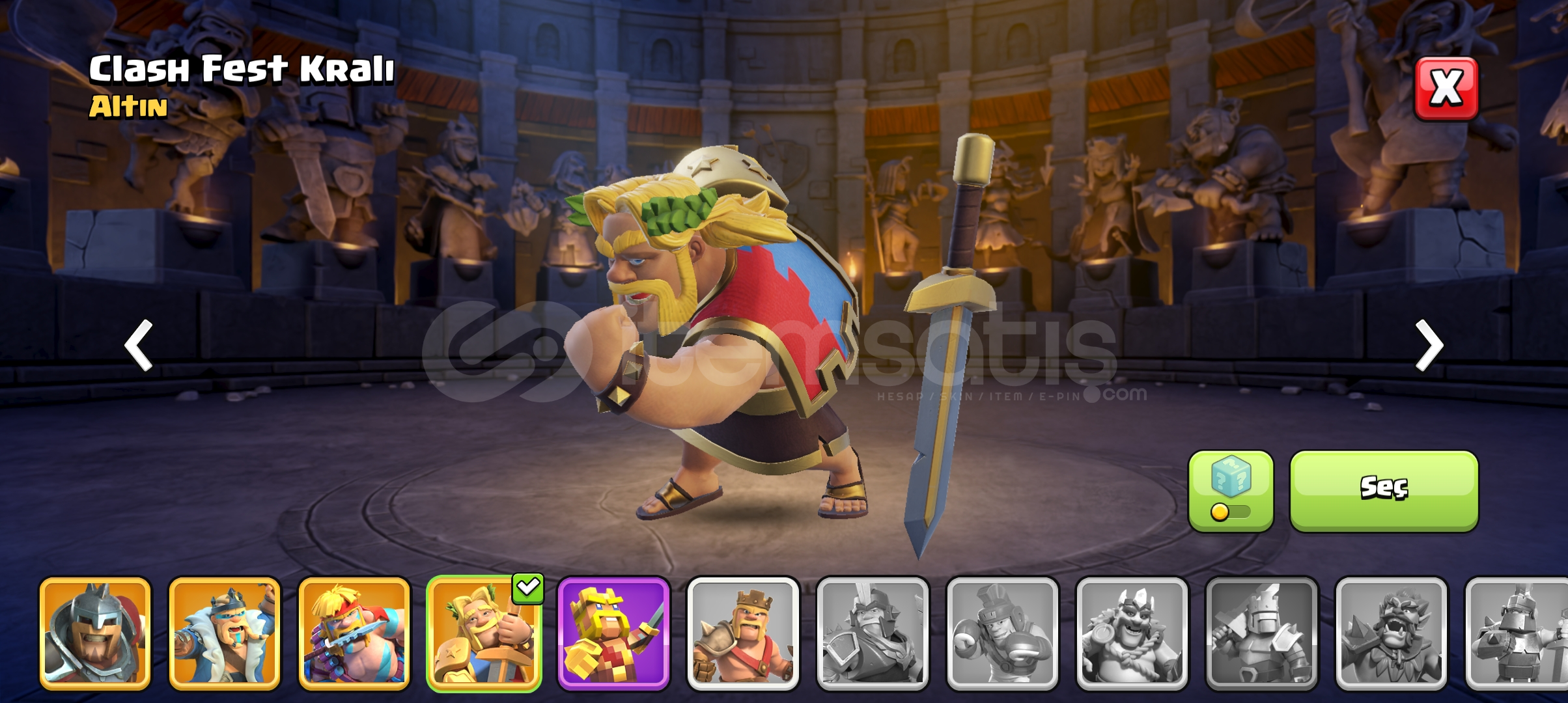 Kostümler vardır 5tane barbar kral , 2tane Okçu kraliçe, 1tane büyü koruyucu, 1tane şampiyon, seviyeleri harikadır 80 80 50 61 40 , 300lig puanı vardır , sadece gmail bağlıdır koruma yoktur , boş gmaile size verilecektir.Altın bilet açıktırr....