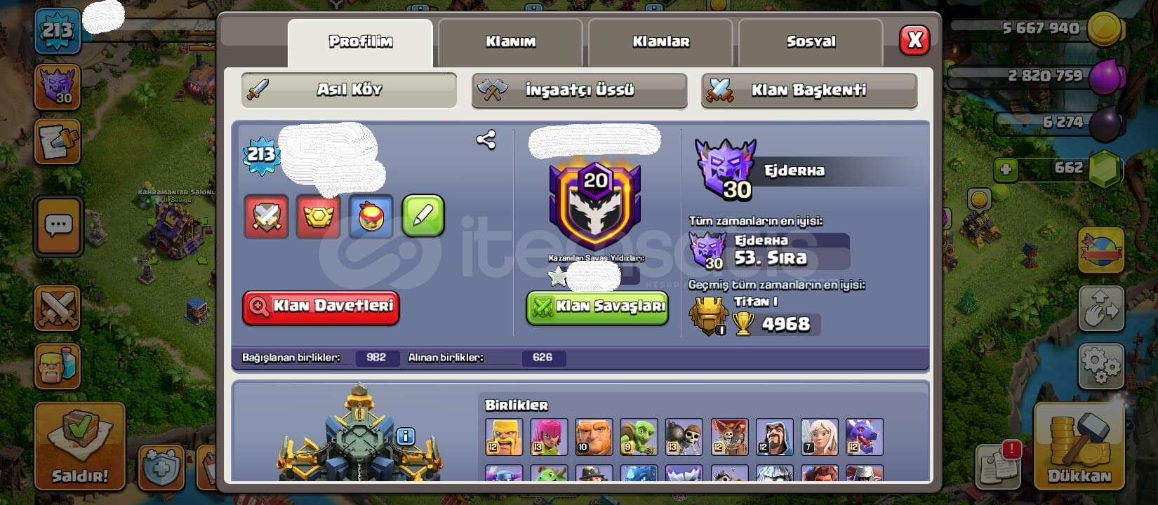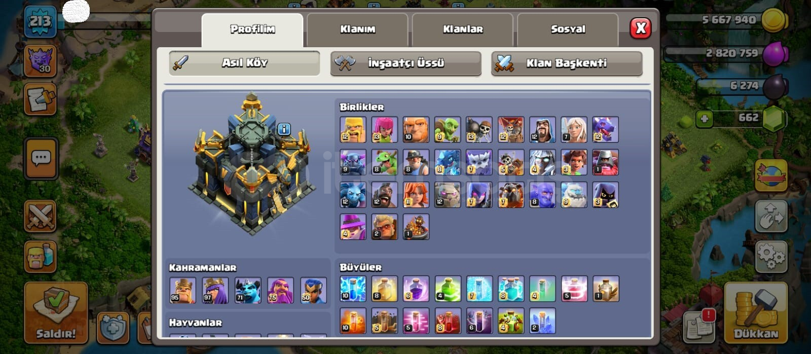 Gerekli bilgiler vardır hesap duvarlar bi tık geride bide şu kanca felan sadece havan ve tesla kaldı kahramanlar iki tanesi full gerisi 97 95 yanı kısaca hesap ful klan 20 seviye kristal 1 başkent fule yakın bööyle bir köyü klanı yapmak için onbinlerce lira harcasanız bile 2 3 yıl emek vermeniz gerekir çok büyük emetir düz fiyat 10 bine lider bi şelikde klanla devredeceğim gerekli bi...
