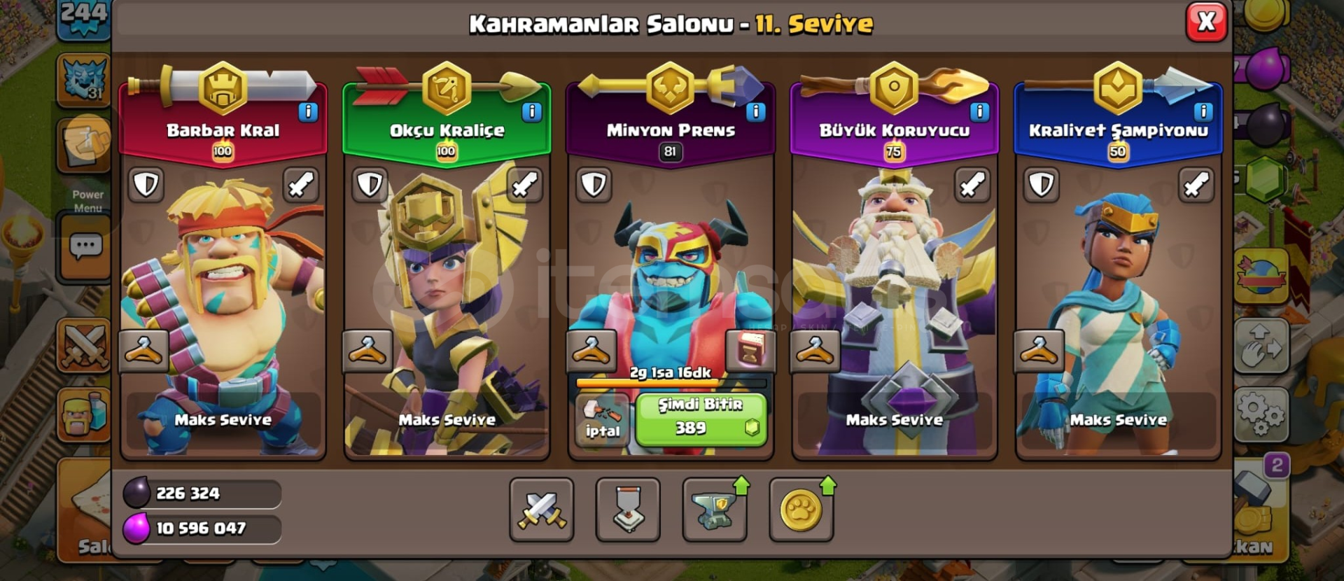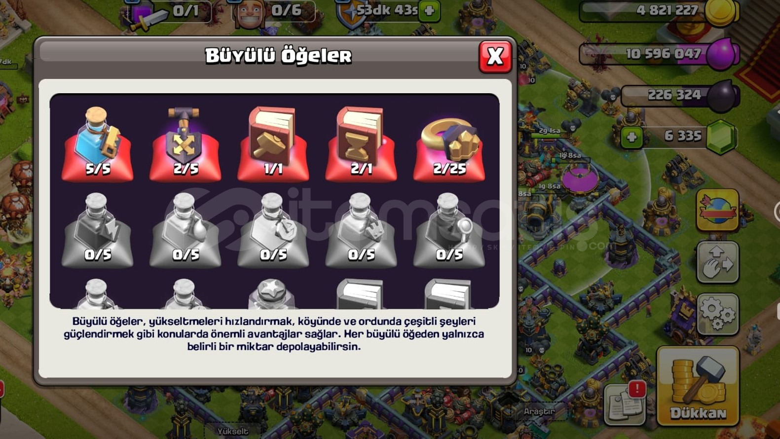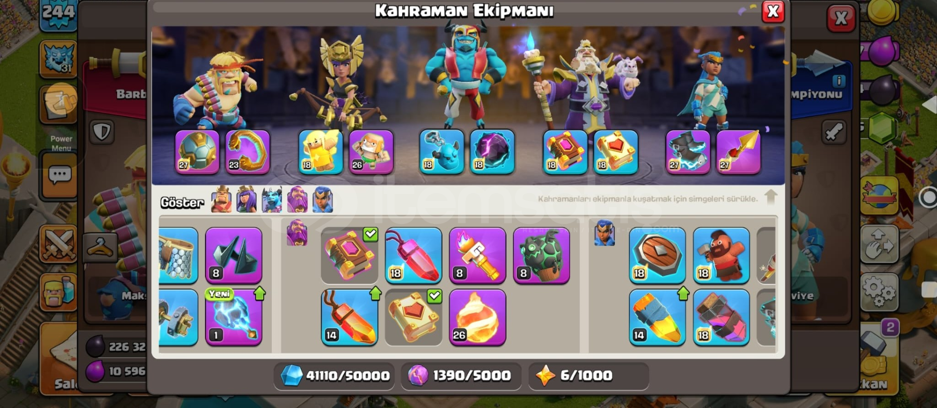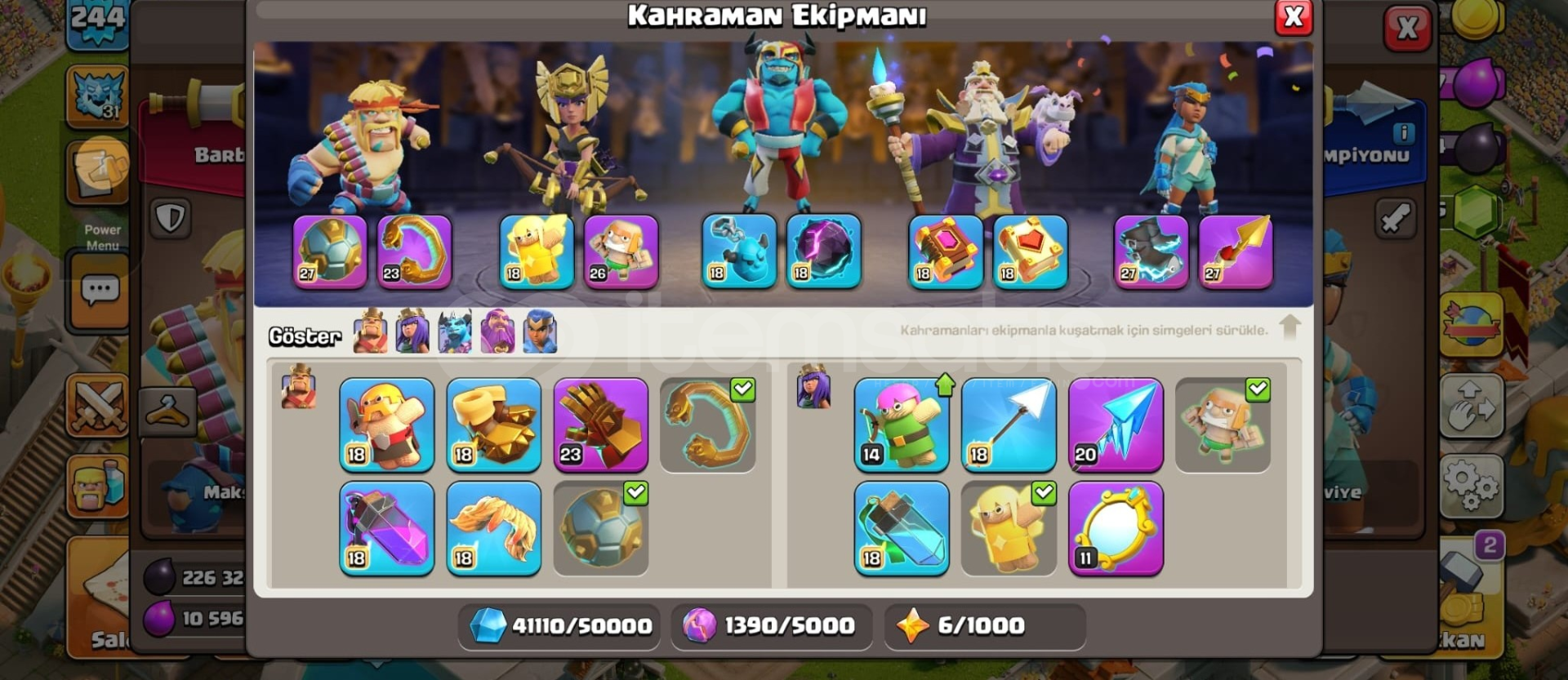 Hesap verdiğiniz maile devredilecektir, hesap koruması aktif değildir yani telefon numarası kayıtlı değildir.Bombalar dahil maks olmuş durumda sadece birkaç tane şarj kalmıstır.Ekipmanı maks .2 adet her şey kitabı, 1 adet inşaat kitabı, 6 adet inşaat iksiri olmak üzere dolu bir envatere sahiptir.2 adet ücretli arka plan mevcut.22 adet kahraman skini 4 tanesi destansı.Yan köy maks+maks....
