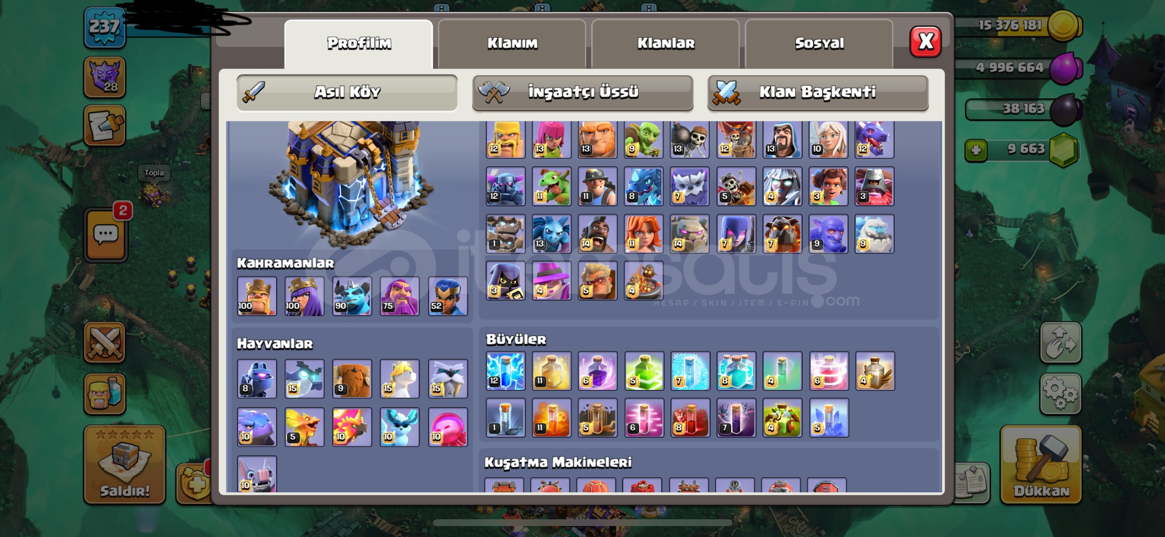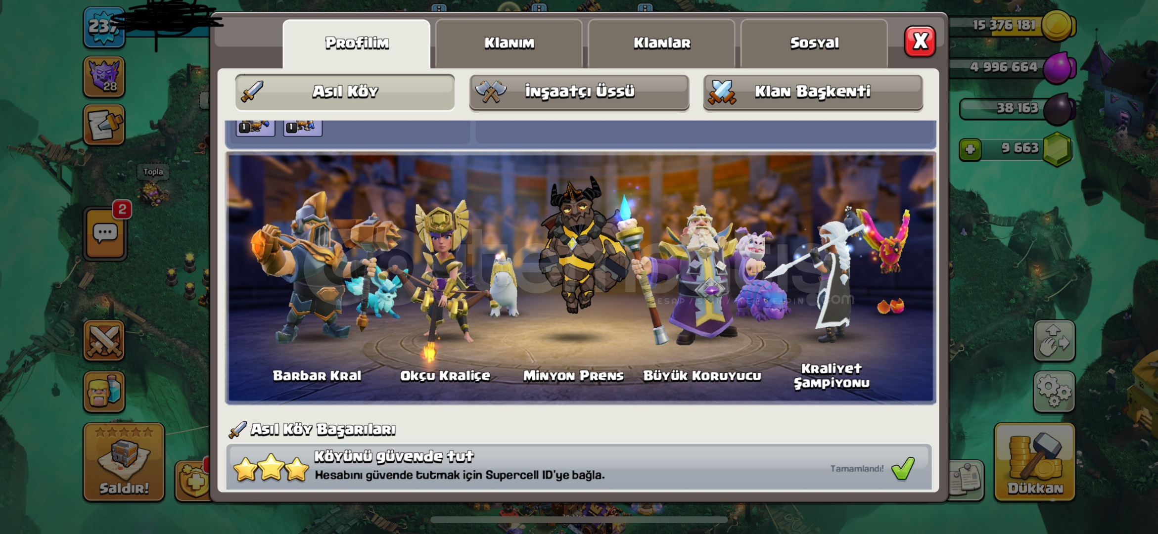 Bb17 tamamen maxtan geçildi.laboratuvar, klan kalesi, yeni savunmalar, kışla, büyü fabrikası, kahramanlar mihrabı falan önemli herşey basıldı.demircisi muazzam.Tel doğrulama açık DEĞİL
