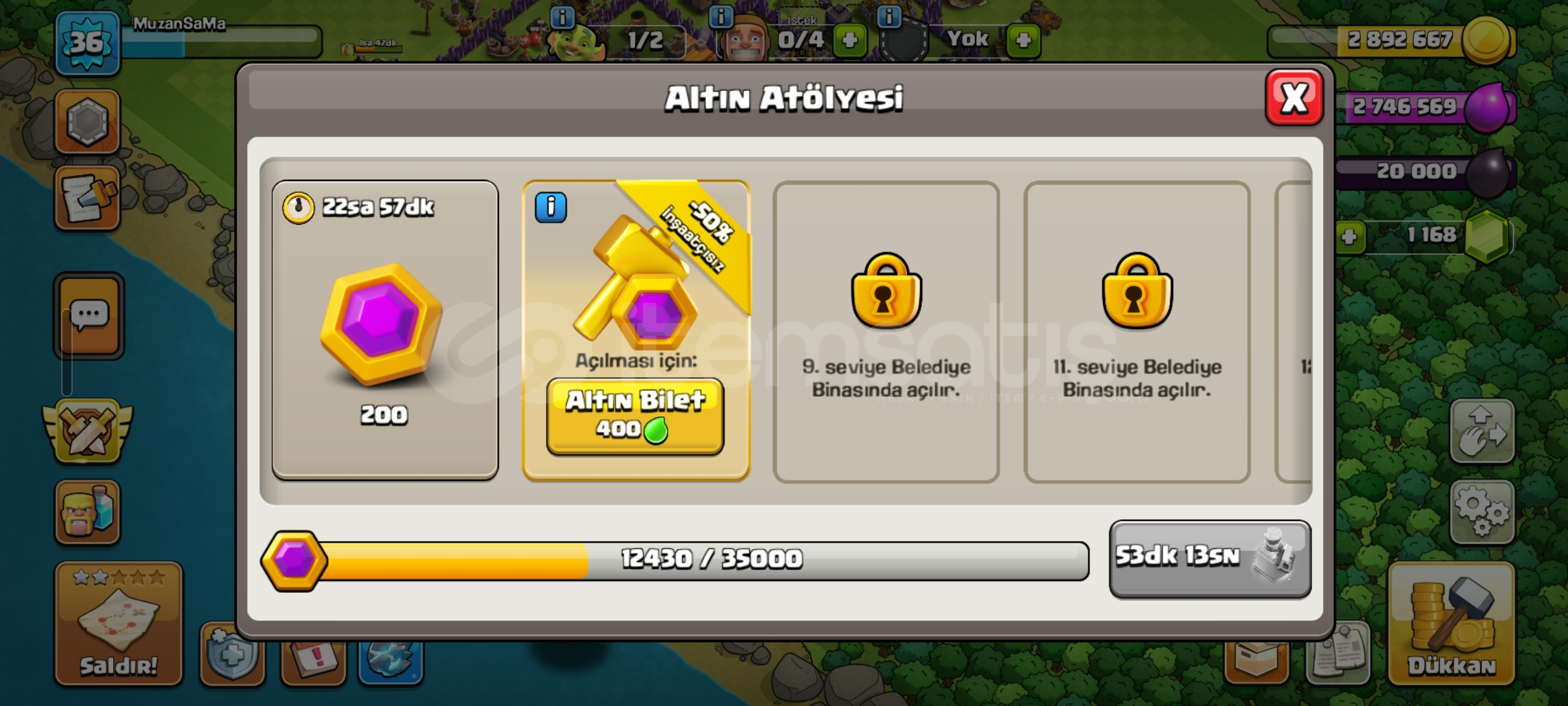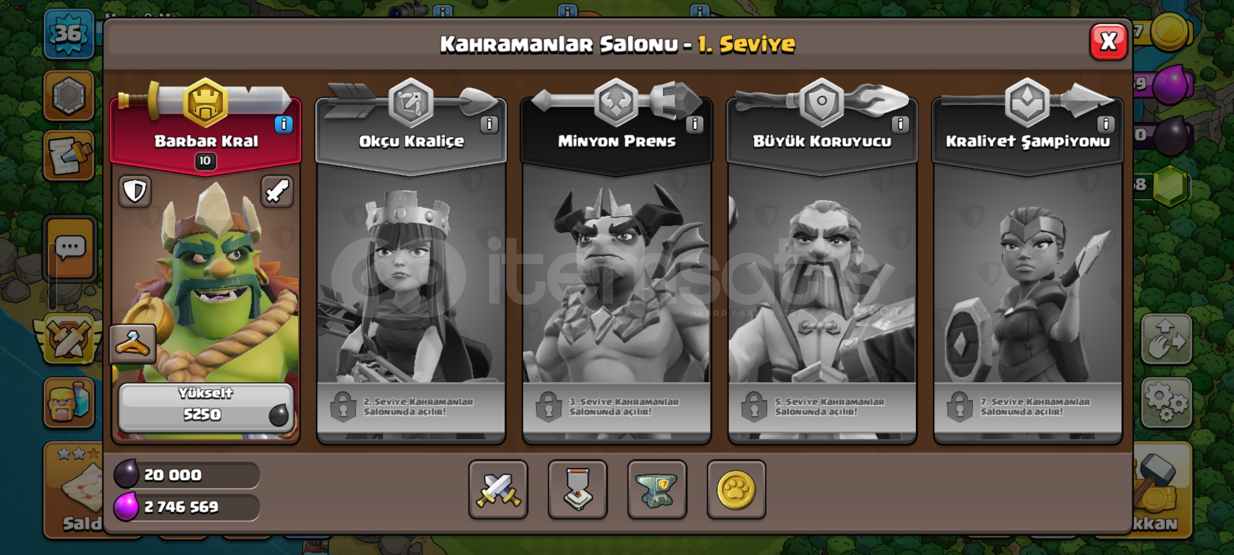 hesap bb7 maxtır 1200 ilave taş ve 4 işçisi bulunmakta barbar kralı skinli 12 k başkent altını var kendi hes...