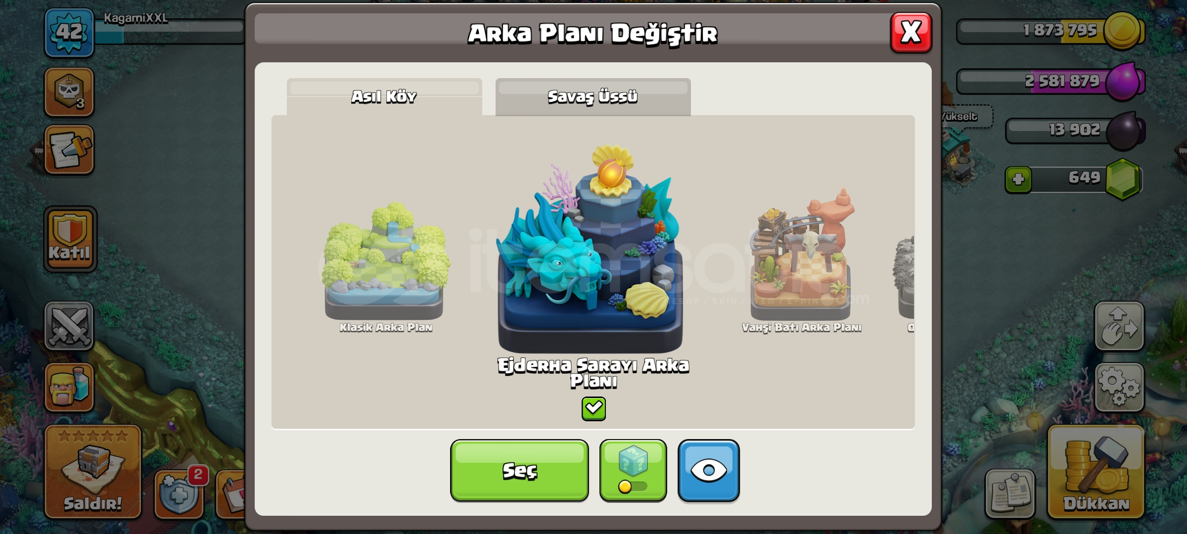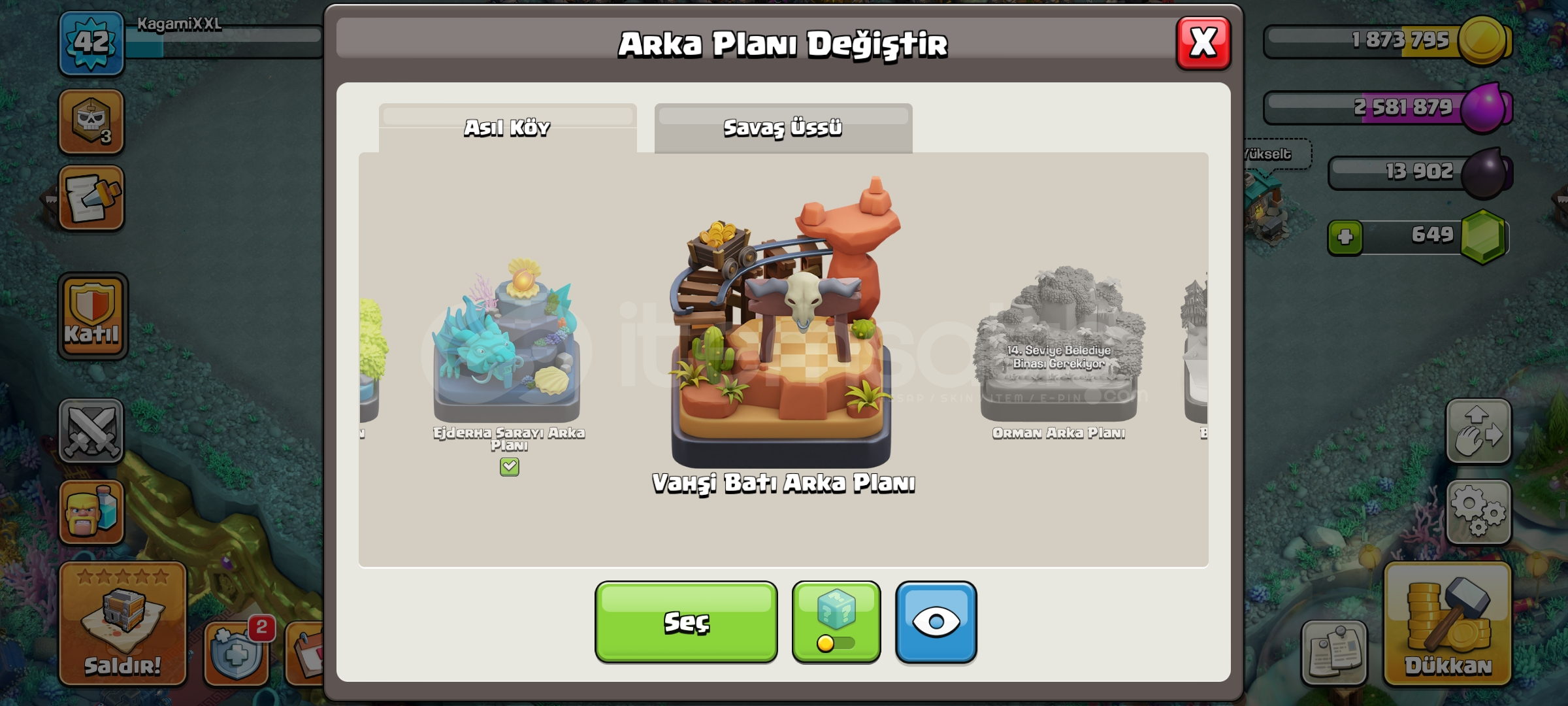 Coc hesabında 2 arka planı + 1 Kahraman kostümü var