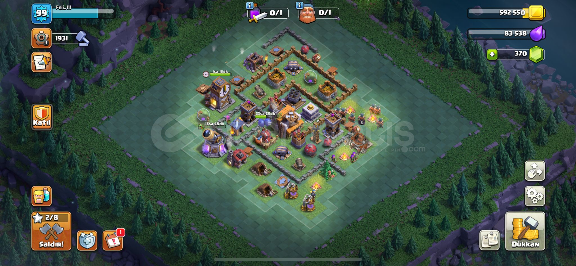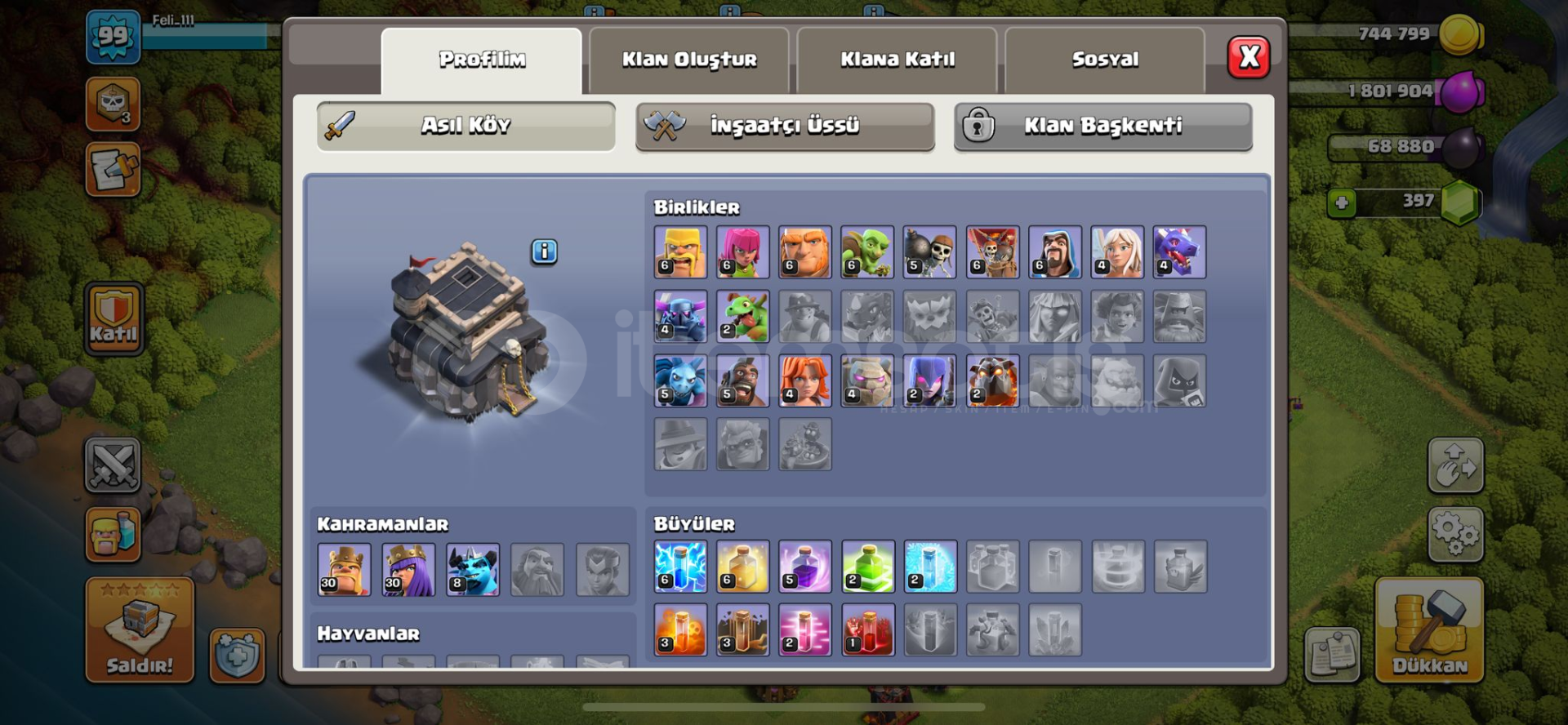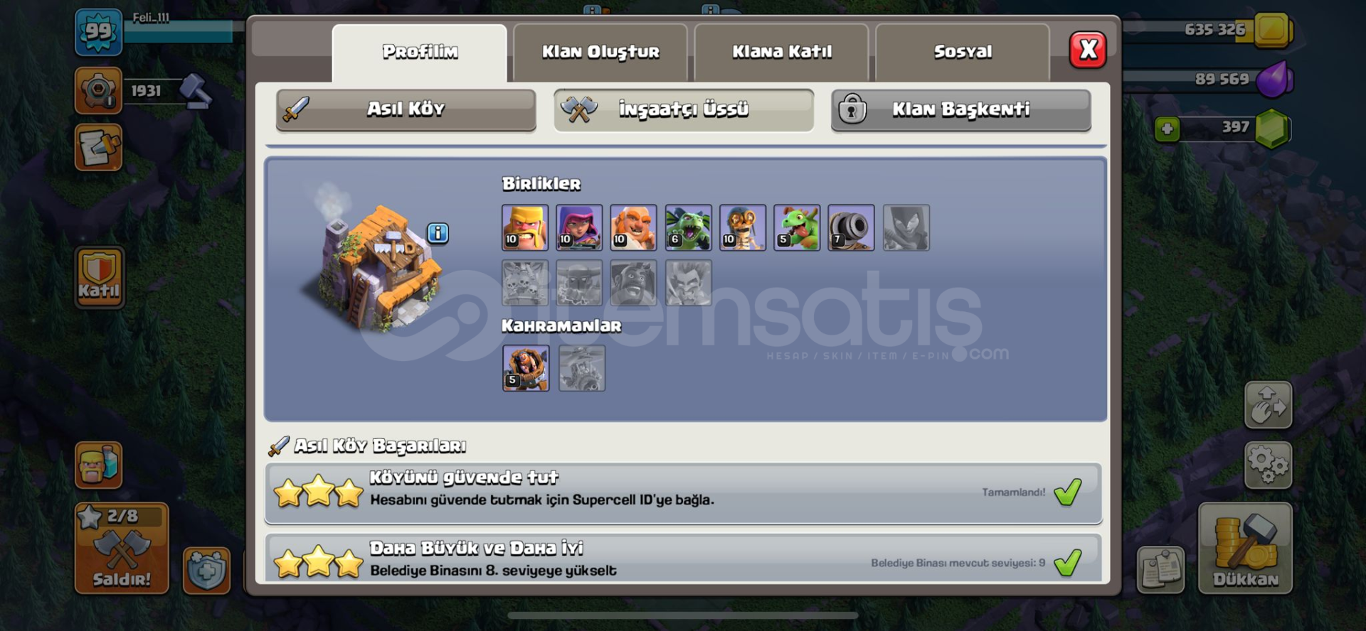 BB9 Max tek tıkla 10 a geçkb9 max+max5 inşaatçı99 level400 taşlabo fullkahramanlar 30-30-8piksel kralbol öge (iksir rünü,kahraman kitabı,inşaat çekici,25 duvar yüzüğü,5 inşaatçı hızlandırma)yan köy iyi durumdaMail değiştirilip teslim edilecektir değişmezse maille teslim edilirHesaplarda koruma yokturİtemsatış'ın supercell oyunları konu...