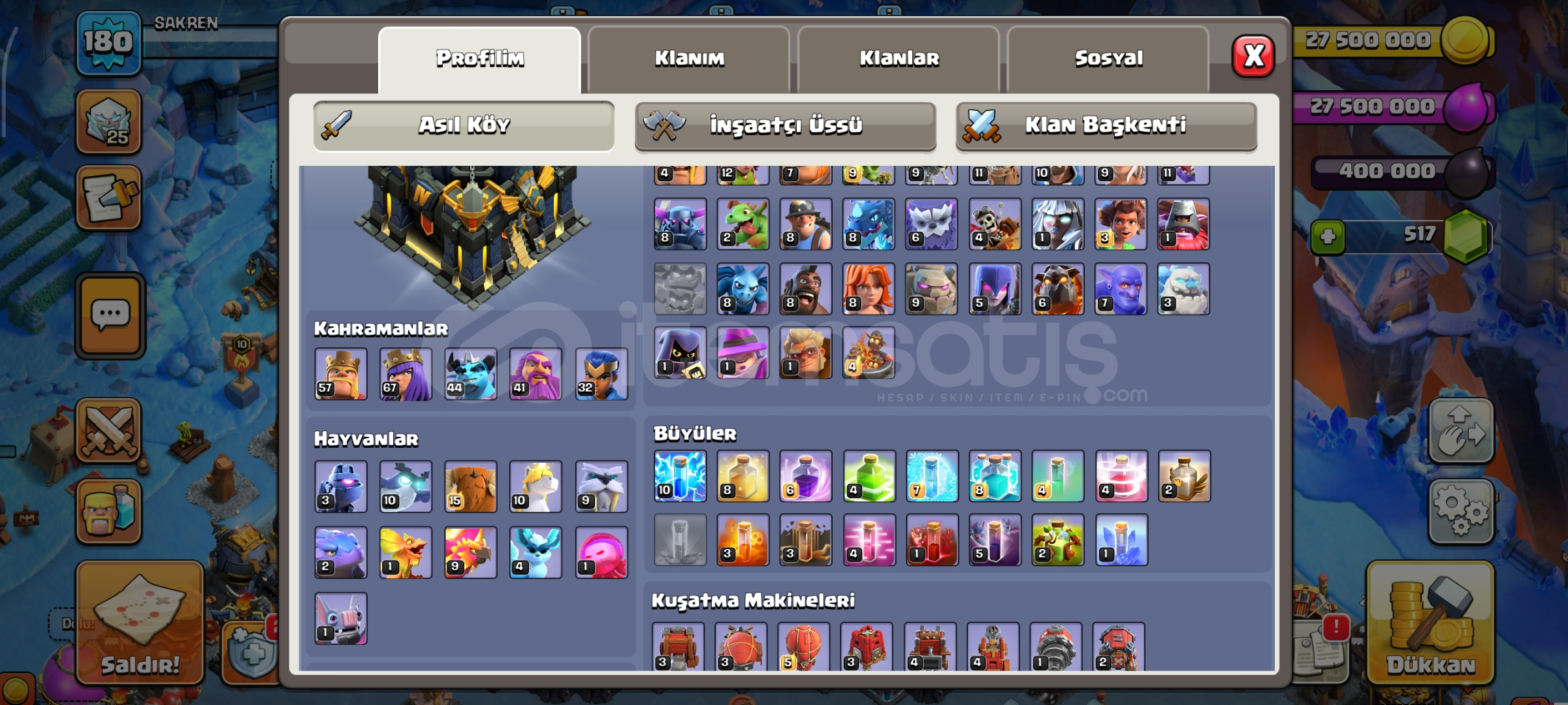 ⭐ BÜYÜK FIRSAT HESABI ⭐ TH 17 180 LVL HESAP💎 ÜCRETSİZ İSİM DEĞİŞTİRME VARDIR 🎁 ÖZEL DEKORLAR VARDIR 🎁 KOSTÜM VE ARKA PLANI MEVCUTTUR 👷🏻6 inşaatçı mevcuttur 🏆EKİPMAN KİSMİ SAĞLAMDIR ➡️ SEVEREK OYNAYACAĞIZ TEMİZ BİR HESAPTIR HER HANGİ BAN VEYA GERİ ALİNMA SÖZ KONUSU DEĞİLDİR...