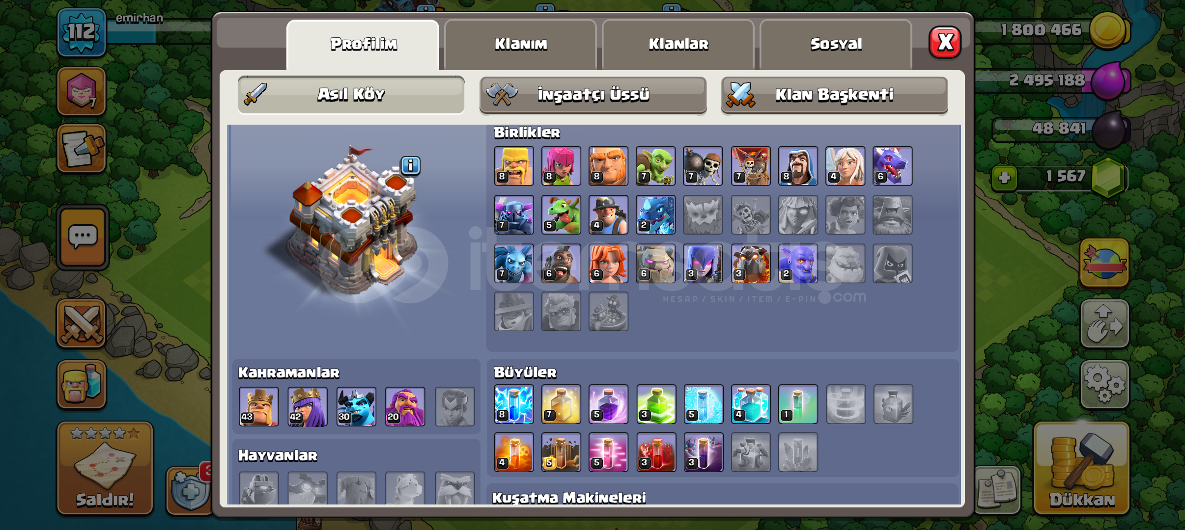 -PİYASAYA İNAT EN UCUZUNU EN KALİTELİSİNİ SİZE SUNMAYA DEVAM EDİYORUZ- -ALTİN BİLET TEKLİFDEN 60 TL.-DUVAR HARİCİ MAXLANMİS DUVARDA MAXLANMAYA BAŞLAMIŞ ALAN KİŞİ BASIP 12YE GEÇEBİLECEK -YUKSEK HERO SEVİYELERİ -YUKSEK BİRLİK SEVİYELERİ (MAX)-HARİKA EKİPMAN -1.5k taş-UCRETSİZ İSİM DEĞİŞTİRME ALAN KİŞ...