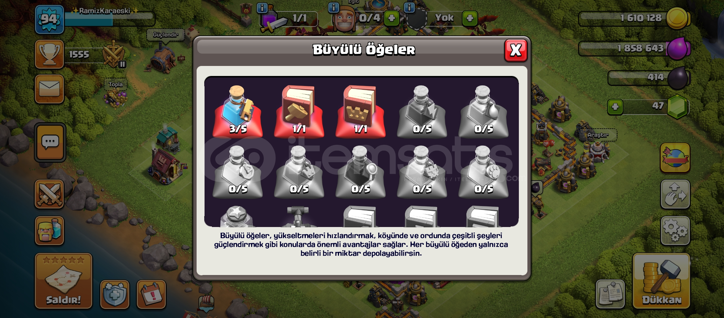 İçinde 314 lig madalyası vardır ganimet arabası dolu dolu 4 inşaatçı vardır kahraman asker vb. levelleri görsellerde mevcuttur