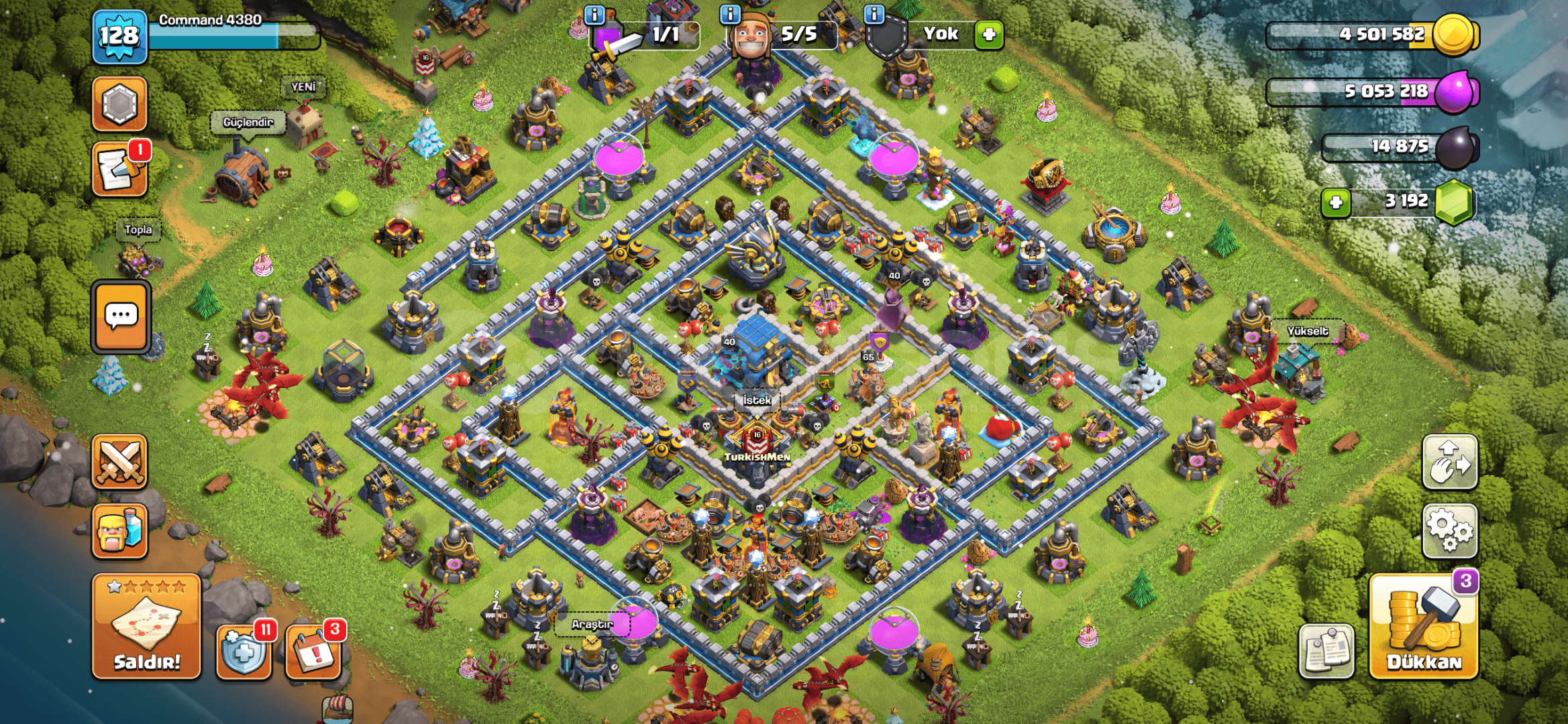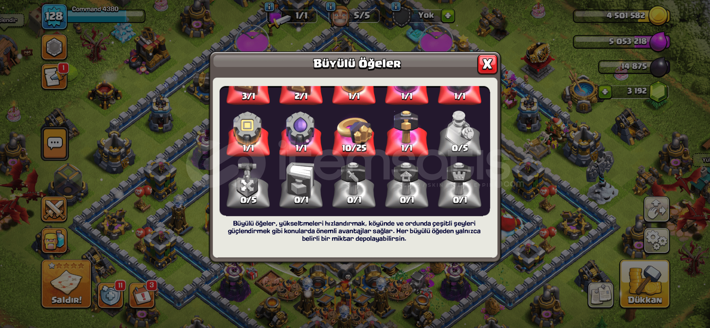 Laboratuvar da 4 tane yükseltme eksik geri kalan herşey Full + Full 3.195 taş 438 lig madalyası 9 inşaatçı iksiri 3 Kahramanlar kitabı 2 Herşeyin kitabı 3585 baskın madalyası mevcut Supercell Id bağlı ve hesabı da bulunmakta pazarlık olur