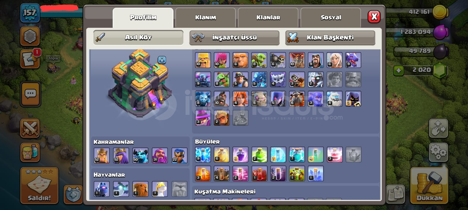Belediye 14 maks hesap demircisi ve büyülü öğeleri gayet dolu 7 tane de Kostüm mevcuttur. Id ye bağlı 5 k kupalı Clash Royale Hesabı ve 15 k kupalı brawl stars hesabı bağlıdır mail ile teslim edilicektir pazarlık mevcuttur