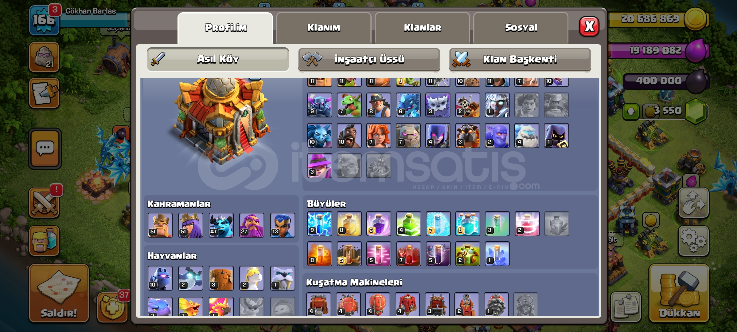 1300+ KS yıldızlı, hero hariç max hesap. Supercell id yoluyla vereceğiniz gmaile aktarılır. Büyük öğeler doludur. Altın bilet aktif. Pazarlık az da olsa yapılır.